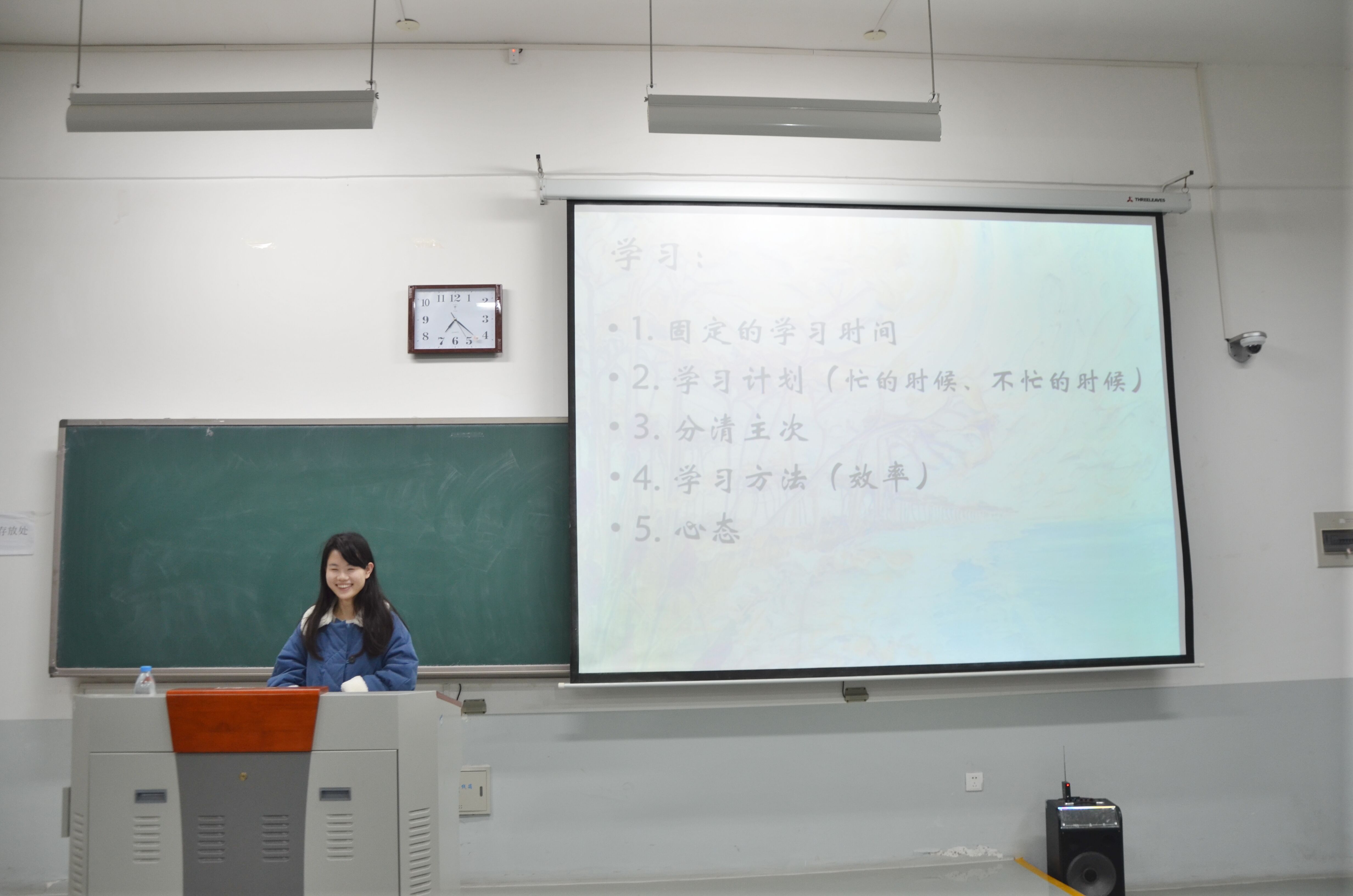 最后,她由学习方面的经验分享过渡到如何把握生活中的得与失、争与不争的为人处世之道。“当我们为了学习而不得放弃一些东西时,不要沮丧,不要懊恼,是我们的终将是我们的”是她给同学们简单却值得深思的忠告。