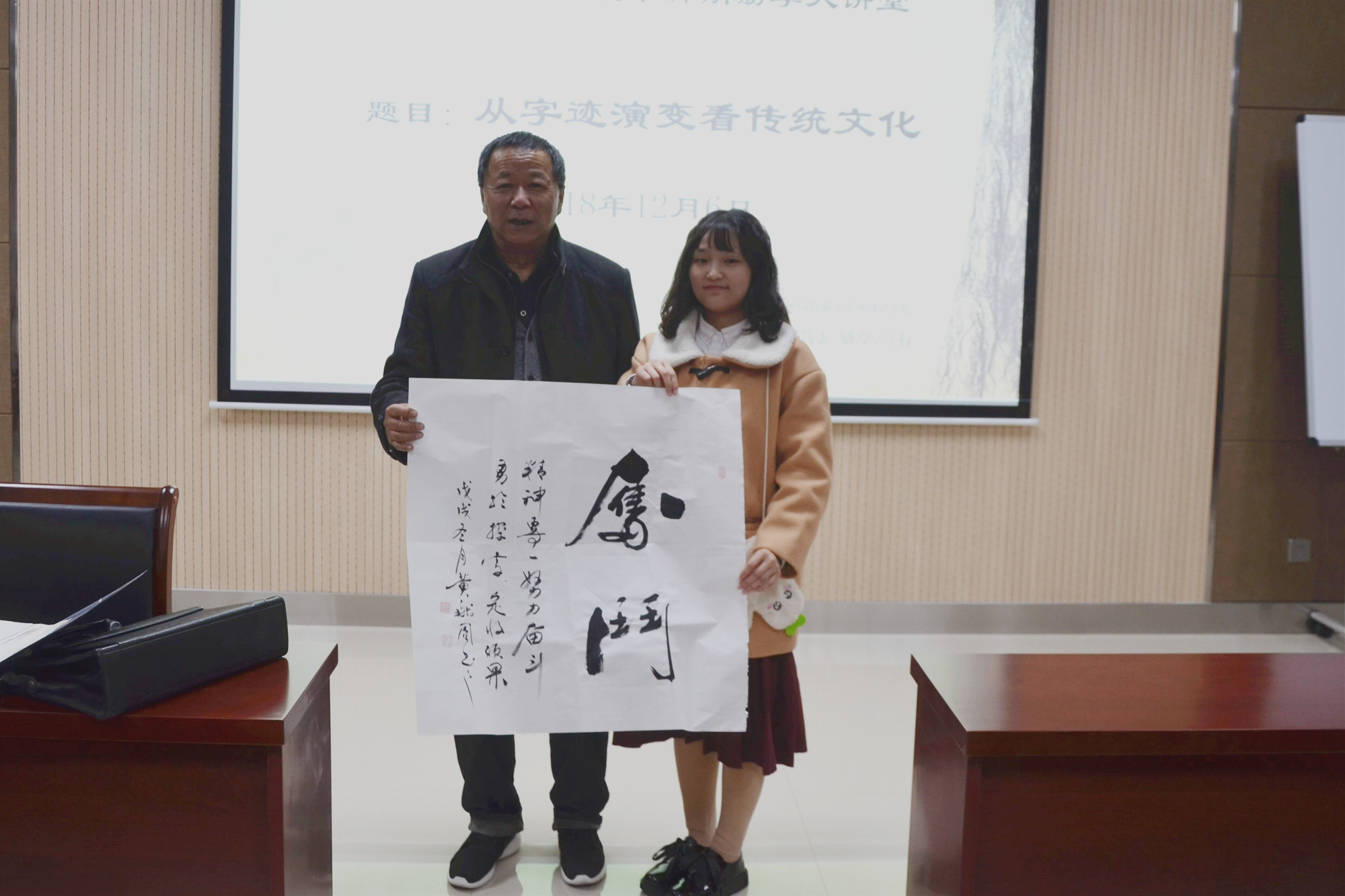本网讯(审稿:王颖 供稿:饶芝玉)为宣传中华传统文化,加深性爱网学生对书法艺术的认识,12月6日晚六点半,性爱网 诚邀中国古今文化艺术研究院副院长、北京华夏风情书画院副院长黄献周走进性爱网第五十七期励学大讲堂,作以“从字迹演变看传统文化”为题的专题报告。性爱网 全体研究生及本科生部分学生代表参与此次讲堂,讲堂由性爱网 党委副书记周晓主持。