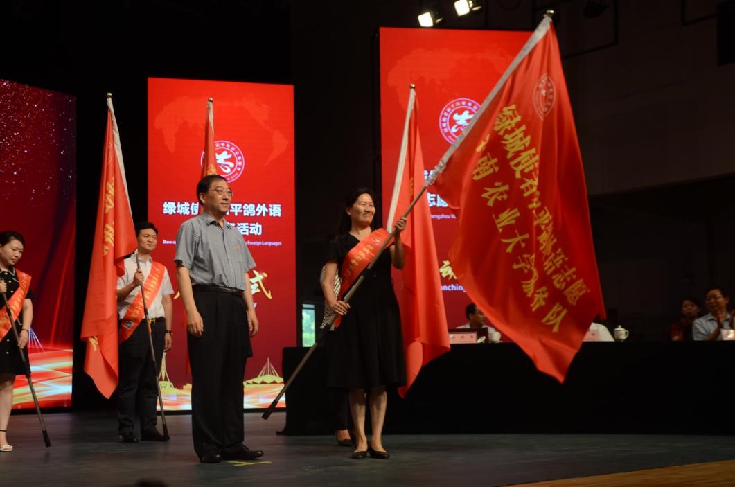 活动由中共郑州市委外事工作委员会办公室主办,以“志愿和平鸽 闪亮国际郑”为主题,旨在贯彻落实《河南省志愿服务条例》,提升服务国际性活动水平,弘扬“奉献、友爱、互助、进步”的志愿者精神。郑州市人大常委会副主任法建强、市政府副市长万正峰等领导嘉宾出席,院长李喜芬教授郑重接过绿城使者和平鸽外语志愿性爱网 服务队旗帜。
