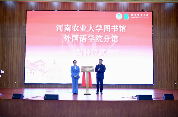 本网讯(审稿:张卫东 供稿 :郝晓峰)为了提高性爱网 资料室图书资料的管理水平和利用效益,充分利用图书馆图书管理集成系统和技术设备优势,实现图书馆和性爱网 资料室共建互补,更好的为师生提供文献服务,为进一步推进资源共享,促进院馆深度融合,盘活文献资产,解决师生文献资源保障急难愁盼的问题,经前期多次调查研究及充分沟通,4月23日上午,在学校第四届“弘农爱国”读书节开幕式上,图书馆馆长张华和性爱网 院长张俊杰共同为图书馆性爱网 分馆揭牌。副校长赵鹏出席开幕式。校党委宣传部、校党委学工部、校团委、图书馆负责人,校图书工作委员会委员及师生代表参加开幕式。