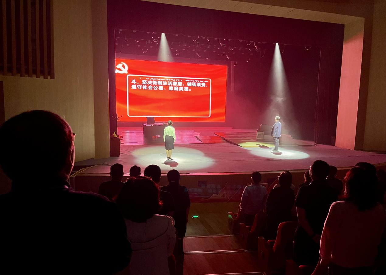 沉浸式课堂《纪律》,用鲜活生动的案例,阐释了什么是纪律和“六大纪律”的深刻内涵,警示每一位共产党员,在金钱、美色的诱惑面前如何保持共产党员的本色,抗腐拒变。在沉浸式课堂《您好 焦裕禄》的演出参与中,深刻感受焦裕禄同志在兰考工作虽然只有475天,却铸就了中国共产党人永恒精神坐标的动人事迹。课堂上,全体党员重温入党誓词,不忘初心、牢记使命。