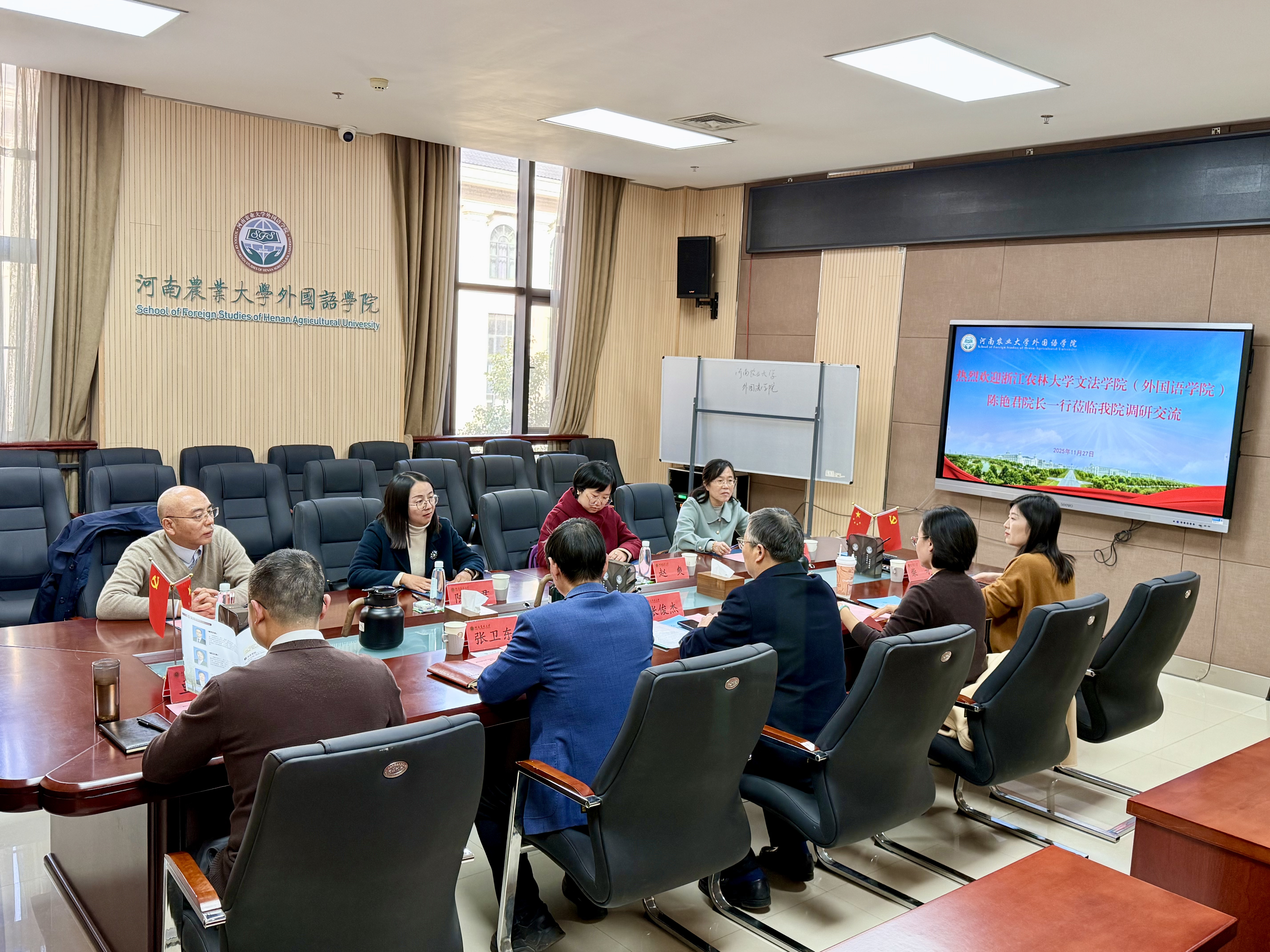 在自由交流环节,双方围绕学科建设、人才培养模式、课程体系优化、学生管理、大学生就业创业等话题展开了热烈讨论。与会教师积极发言,分享了各自在教学科研中的心得与体会,共同探索外语人才培养的新路径和新方法。