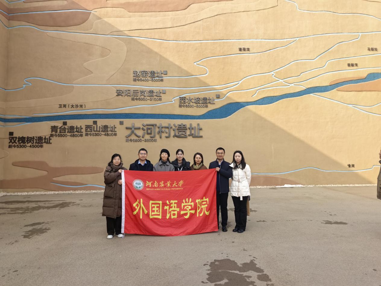 党委副书记张玥、副院长豆涛带领翻译系教授周聪贤、学生辅导员赴大河村遗址博物馆调研交流。大河村遗址博物馆副馆长戴建增、社教部部长钱燕参加活动。