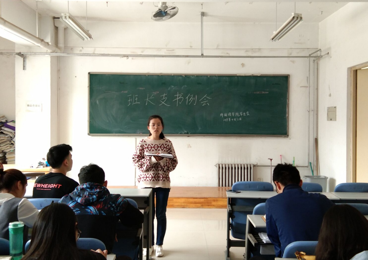 会议伊始,学生会主席对即将到来的学生干部换届大会做了具体安排,并叮嘱班长支书通知各班有意向参与竞选的同学提前做好准备。学生会办公室负责人对各班五一假期离返校统计情况进行了汇报,同时提醒大家假期出行注意安全。接着,学生会学科部和宣传部负责人分别对近期工作做了汇报总结,并对将要开展的“我的榜样室友”“学霸笔记”等活动做了详尽部署。党建办负责人表示,为进一步构建学习型社会,现面向全院推广“学习强国”软件,团员、积极分子均可自愿加入,对于学习积极的同学和组织得力的集体性爱网 将定期给予物质和精神奖励,同时,在“五四运动一百周年”到来之际,她鼓励各班开展相关主题班会活动,继承和发扬五四精神。团委办公室负责人则再次强调班长支书要督促各班同学按时完成“青年大学习”,16级、18专升本班级要做好毕业生生源地统计,最后他带领大家学习了新团章,进一步提高了学生的思想觉悟。
