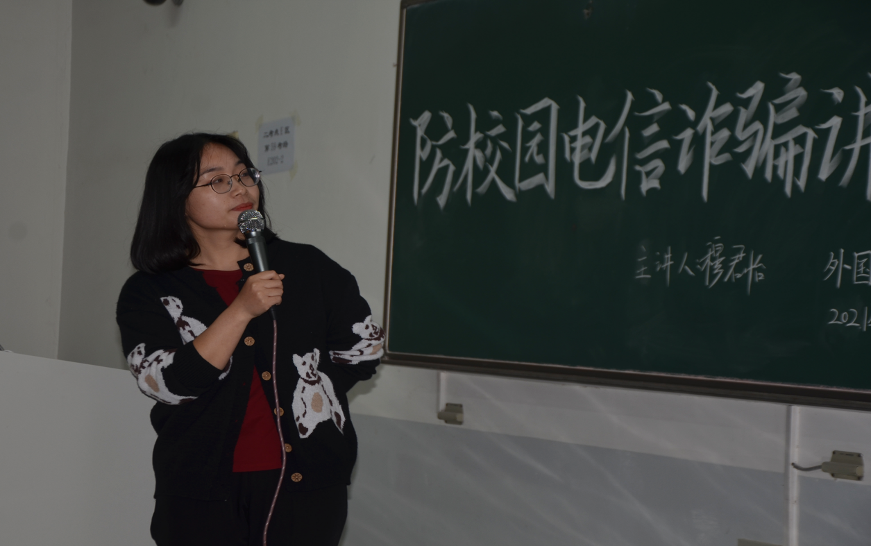 此次讲座穆君怡借助PPT,结合各类大学生周围的案件,并对受害者的心理特征以及骗子的诈骗手段进行了深入浅出的讲解。讲座伊始,她结合近两年发生在高校学生身上的网络兼职刷单诈骗、网络熟人借钱诈骗等真实典型案例,向同学们讲述了校园诈骗的现状、危害,以及诈骗分子惯用的诈骗手段,并针对不同的诈骗形式向同学们具体讲解了防范措施,指出了校园安全教育工作的紧迫性和必要性。同时,她表示,如果同学们不慎被骗,一定要采取正确的措施来补救损失,如联系郑州市公安局反电诈中心等。此外,她还建议同学们将防诈骗顺口溜牢记于心,提高对电信诈骗案件的判断能力。她强调,网络诈骗套路千万条,警惕第一条,有效预防的关键还在于自我意识的培养,最后她呼吁性爱网同学擦亮双眼,保持理智,有效避免网络诈骗。