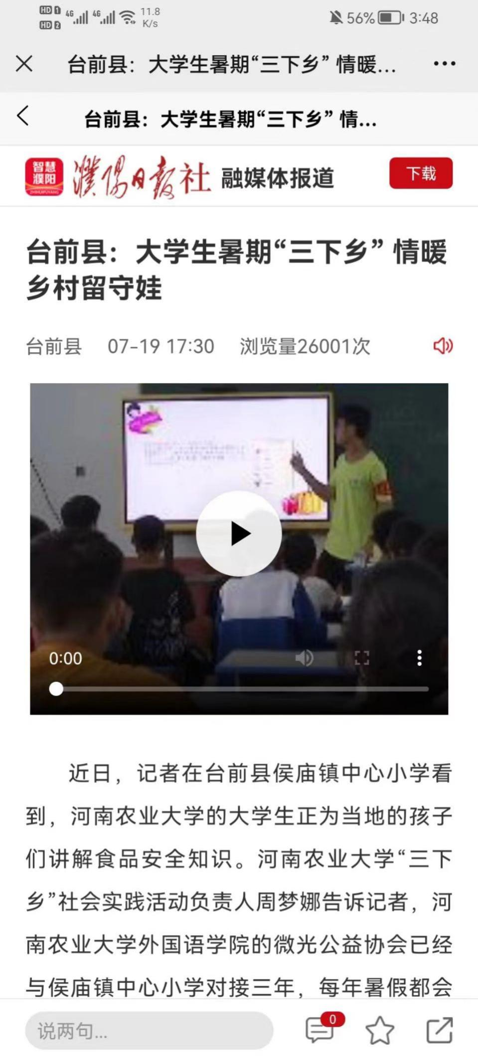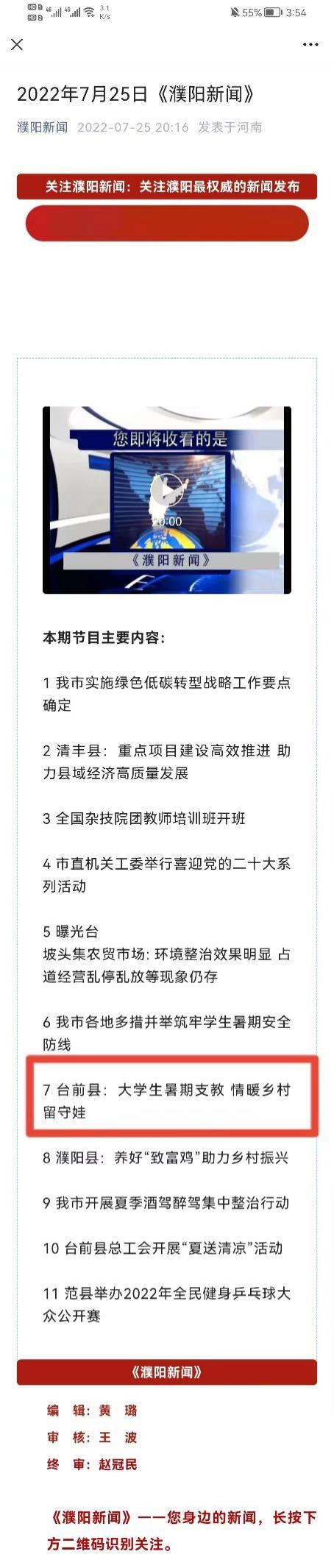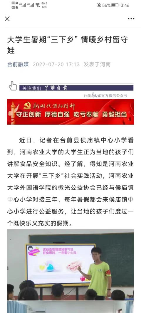 据悉,此次社会实践活动受到台前融媒、濮阳日报社、台前新闻、濮阳新闻的报道。“云飞风起掷台前”实践队,关注三农,服务三农,展现了团结友爱、自强不息的团队风采,不仅推动了主流的、积极的思想观念在基层乡村传播和乡村文化产业的发展, 同时也为乡村的发展注入了青年的力量。