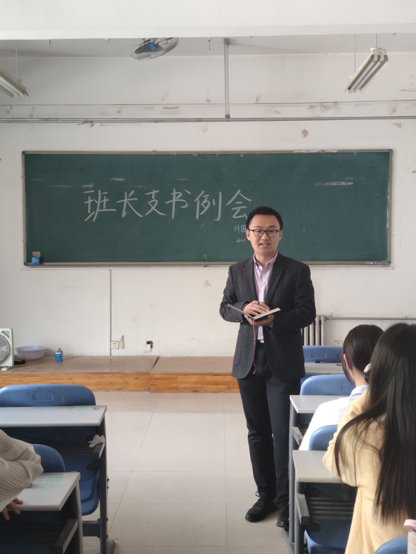 会议最后,冯超对近期的工作进行安排部署,进一步解读了就业的相关政策。他重申了假期去向表填写和返校签到工作的重要性,号召同学们积极参加即将举办的精品双选会、考研经验分享会、“互联网+创新创业大赛”以及四六级模拟考试等活动,并祝愿同学们度过一个平安快乐的五一假期。