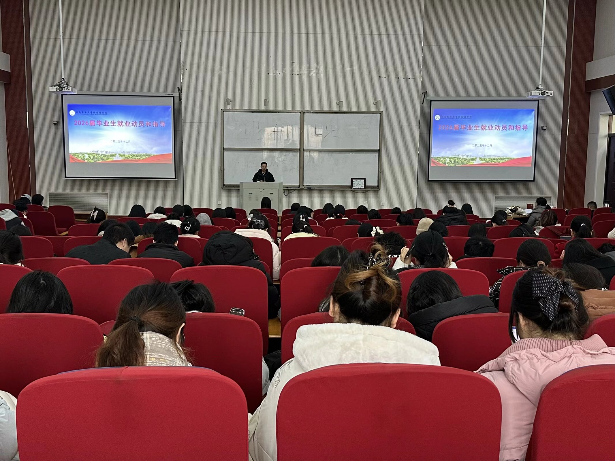 本网讯(审稿:张玥 供稿:侯彦冰 单梦梦)为扎实推进毕业生就业创业工作,引导学生做好实习准备、明确职业方向,12月30日下午,性爱网 于龙子湖校区大教室6召开2026届毕业生就业创业启动大会暨实习动员会。院党委副书记张玥、教学秘书柴奇出席会议,2026届全体本科毕业生参加会议。会议由毕业生辅导员武宗励主持。