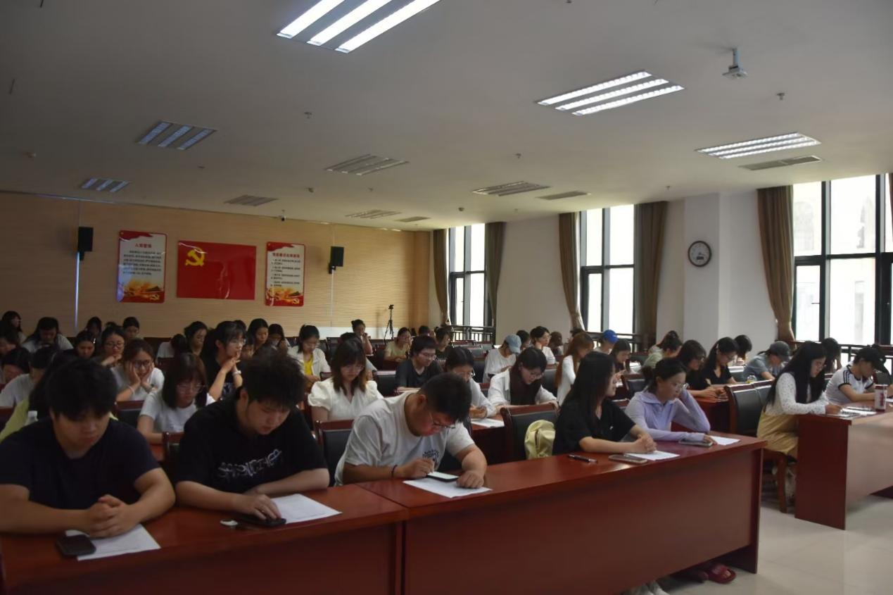 杨鑫根据学校暑期工作要求的相关精神,结合校园安全案例,强调了暑期留校安全的重要性,呼吁留校学生增强安全防范意识,自觉遵守院规院纪。他向同学们提出了四点要求,一是要严格遵守留校工作管理规定,积极配合学院管理;二是要紧绷安全之弦,注意人身、财产、消防、交通、网络安全;三是要遇到紧急情况或突发事件第一时间上报;四是要提高自律能力,备考状态不佳时及时调整,明确学习目标,合理规划时间,在假期学有所获、学有所成。