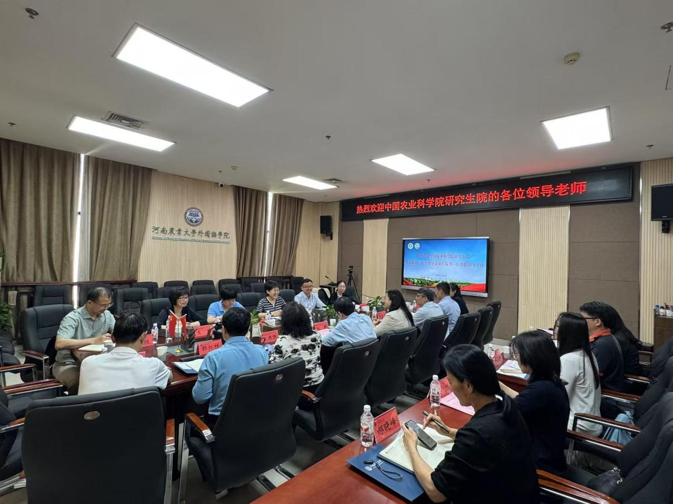 温洋简要介绍了中国农业科学院研究生院此行的目的和意义,对学校在中国现代农业联合研究生院的教育教学和人才培养所做的工作表示充分肯定,期待通过党支部联学共建机制,为双方的内涵式发展注入新的动能。