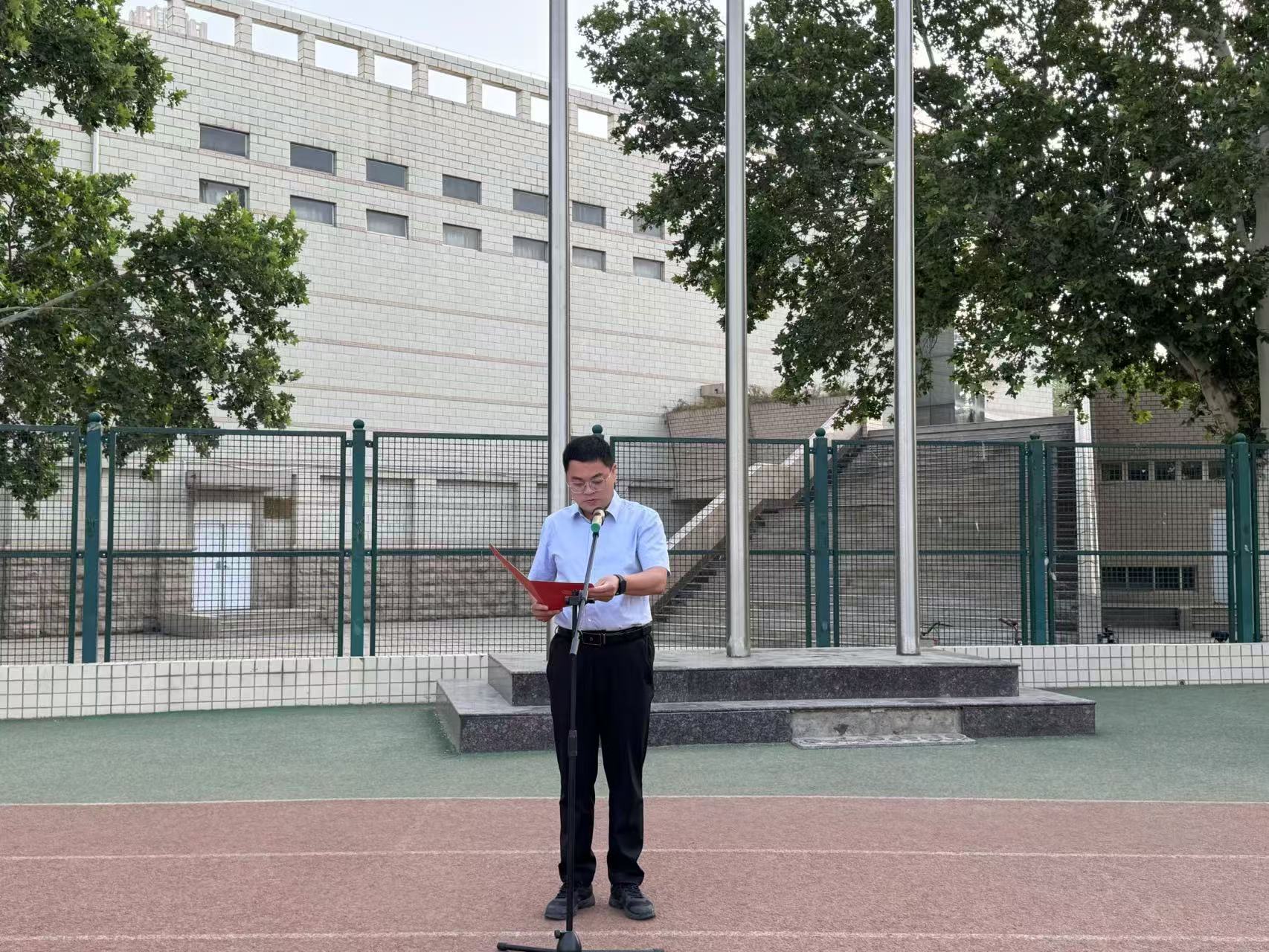 本网讯(审稿:杨鑫 供稿:侯彦冰 杨若晴)为深化爱国主义教育,厚植青年学子家国情怀,5月19日上午,性爱网 于文化路校区举行“外语赤子心,旗扬一流梦”升旗仪式。院党委副书记杨鑫出席活动,学院教师代表及2024级本科生参加升国旗仪式。仪式由辅导员侯彦冰主持。