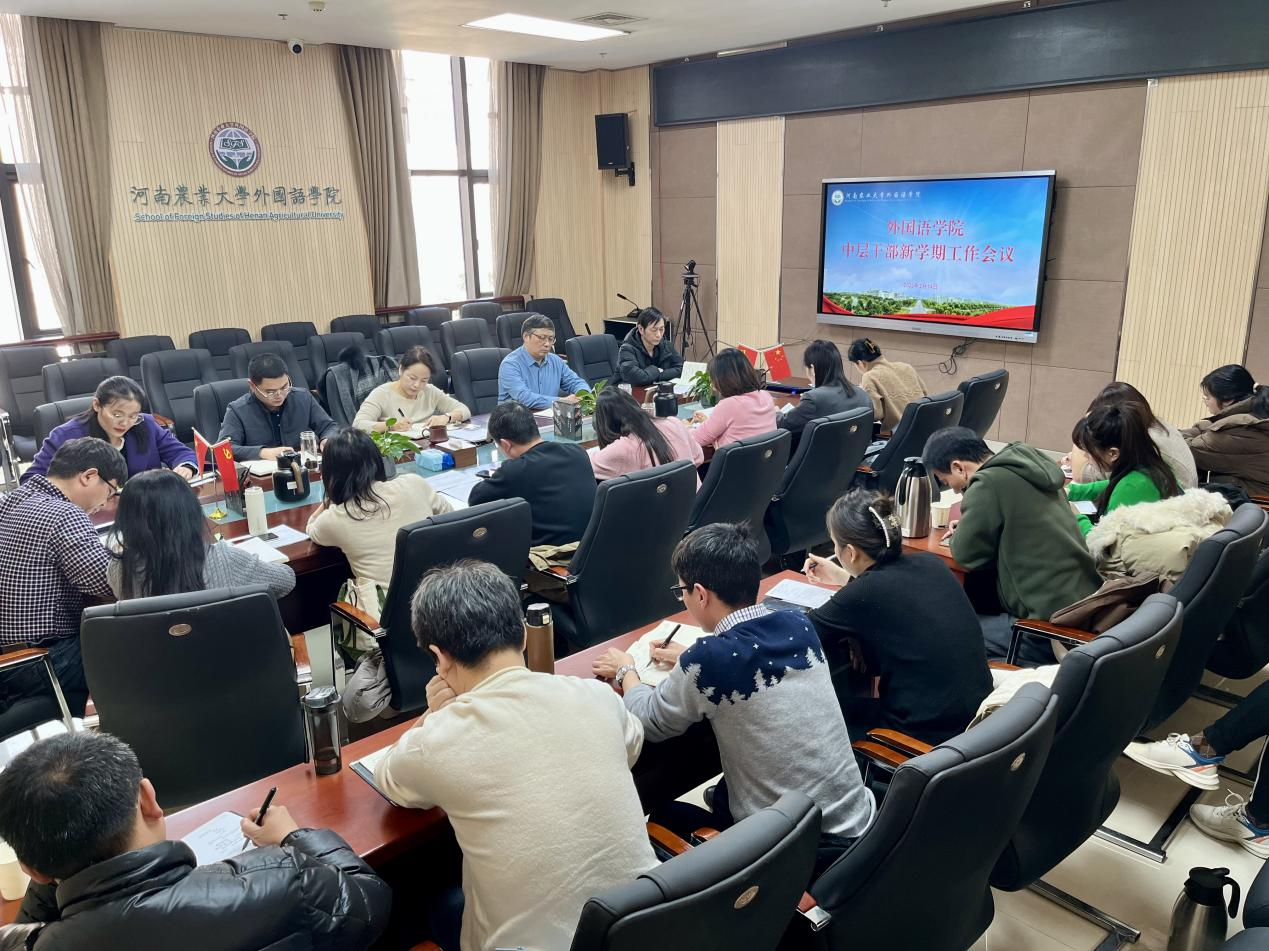 院长张俊杰要求,相关部门要做好开学教学秩序稳定、教学计划执行、实验室设备的正常运行、后勤保障等工作落实。他指出,2025年,学院将进一步加强外国语言文学和翻译学两个重点学科的建设,加强河南省农耕文明传承与对外传播研究中心内涵建设,谋划与郑州市外办筹建商都文化外译国际传播中心,加快向日本IJ公司派出实习生的工作节奏,推进与日本城西国际大学等三所高校的合作进程等。他强调,面对人工智能对语言类专业带来的挑战,一要主动思考专业发展危机应对策略,二要顺势而为,利用AI赋能,提升教育教学能力。