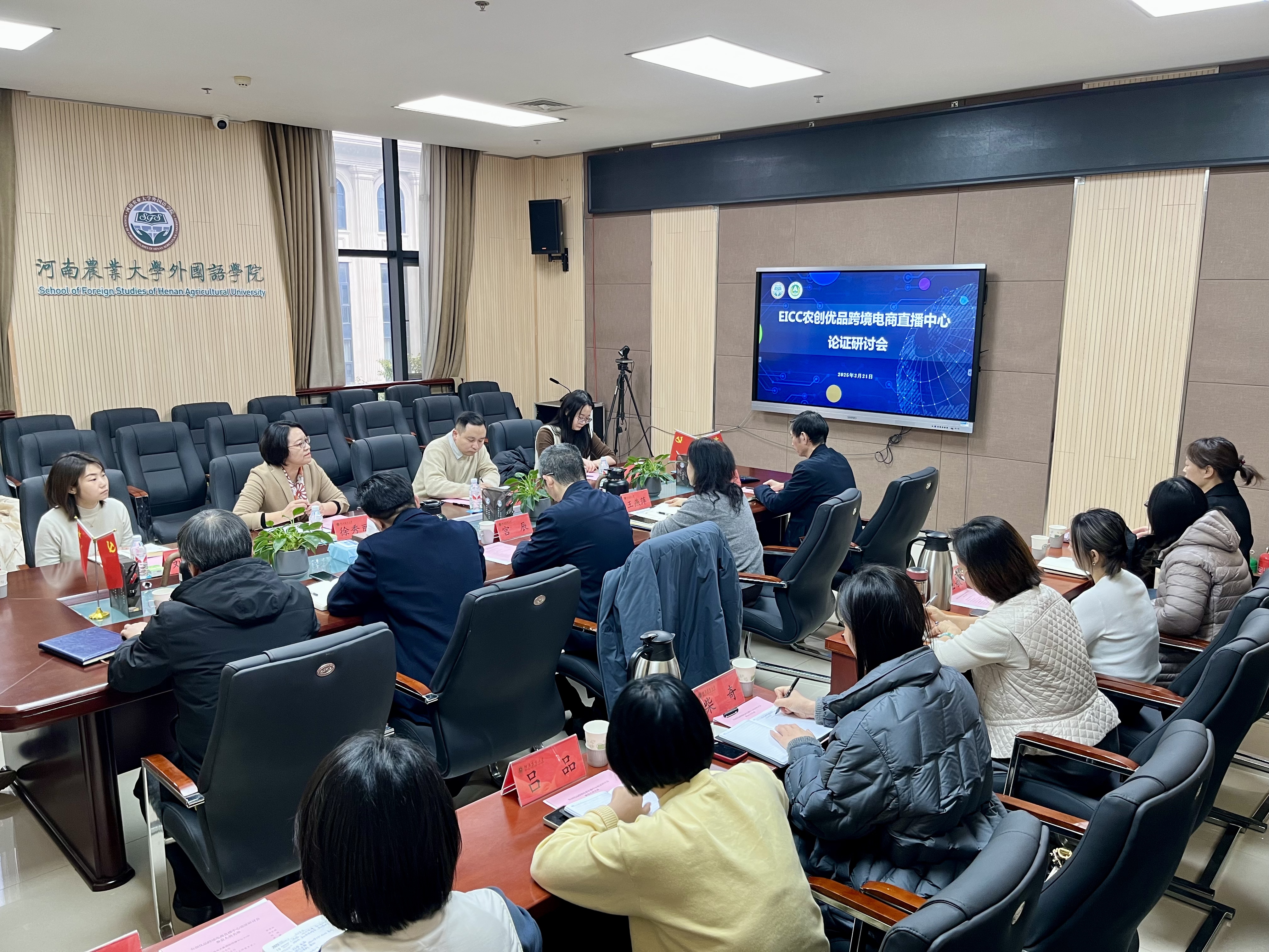 本网讯(审稿:王燕萍 供稿:郝晓峰 吕品 图片:黄彪)2月21日上午,河南电视台大象国际传播中心EICC-性爱网 农创优品跨境电商直播中心论证研讨会在性爱网 龙子湖校区顺利召开。河南电视台大象国际传播中心主任徐秀丽、副主任冉亚阁、三文鱼工作室负责人刘鸽、编辑记者李蕤,性爱网 资产经营有限责任公司总经理宫辰,园艺学院院长郑先波,性爱网 党委书记王燕萍、院长张俊杰、副院长张卫东、校党委宣传部相关人员及性爱网 教师代表参加了会议。会议由王燕萍主持。