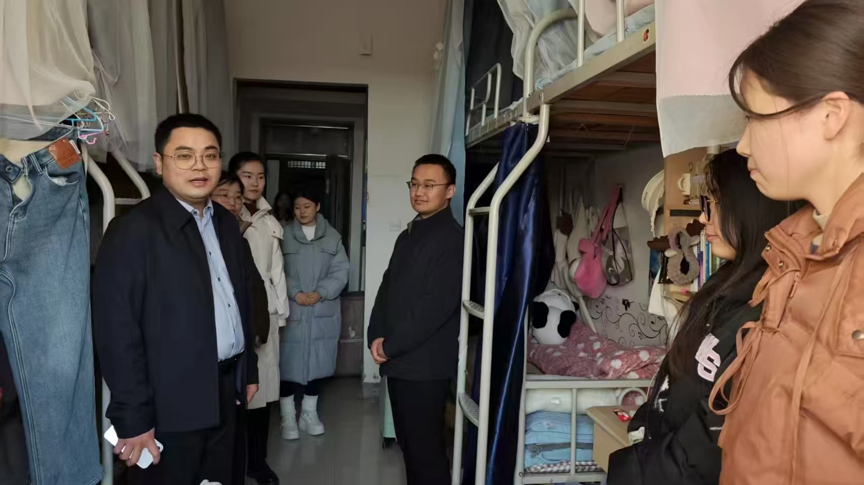 2月16日下午,院党委副书记杨鑫在团委老师的陪同下走访学生宿舍。期间,院领导对同学们关怀备至,详细了解同学们的寒假生活及新学期规划,并叮嘱同学们及时调整作息,时刻关注用电安全和人身财产安全,鼓励同学们以饱满的热情投入到新学期的学习、生活中。此次走访活动不仅增强了师生之间的情感交流,也为新学期各项工作的顺利开展奠定了坚实的基础。