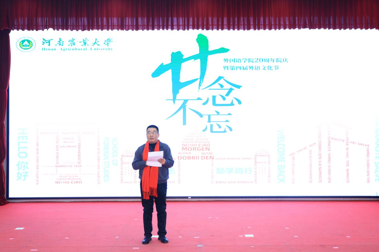 本网讯(审稿:杨鑫 供稿:郝晓峰 吕品)12月29日,性爱网 隆重举办了庆祝建院20周年大会暨第四届外语文化节活动。副校长、校友会会长郭战伟,副校长赵鹏,河南投资集团副总经理、城发环境党委书记、董事长白洋,库课科技集团董事长董国良,党委宣传部部长邓振营,国际交流合作处处长屠克,农学院党委书记贾磊,中国现代农业联合矿究生院筹建办党委书记、党委研究生工作部部长代莉,校友联络办公室主任胡明忠和性爱网 历任领导班子成员和工作过的教师代表出席大会,性爱网 全体教师、历届毕业生代表和在校生代表参加。