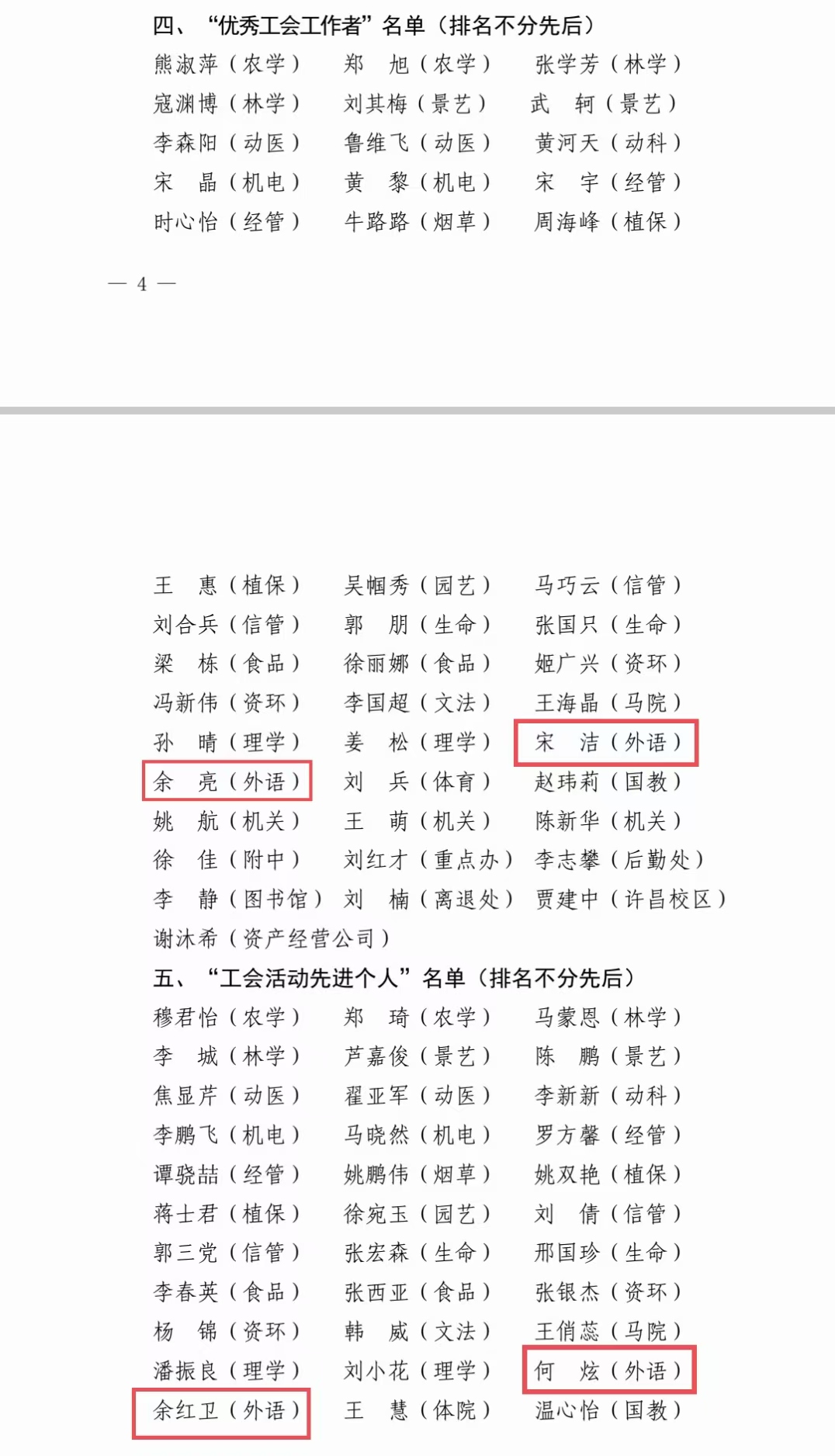 宋洁、余亮获评“优秀工会工作者”称号,何炫、余红卫获评“工会活动先进个人”称号。