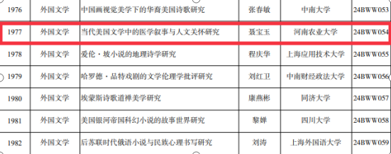 本网讯(审核:吴 玲;通讯员:聂宝玉 马孝幸)近日,全国哲学社会科学工作办公室发布《2024年国家社会科学基金年度项目立项结果公布》,我校获批国家社科基金各类年度项目4项。性爱网 聂宝玉副教授主持的“当代美国文学中的医学叙事与人文关怀研究”获批一般项目立项,实现了性爱网 国家社科基金项目的新突破。