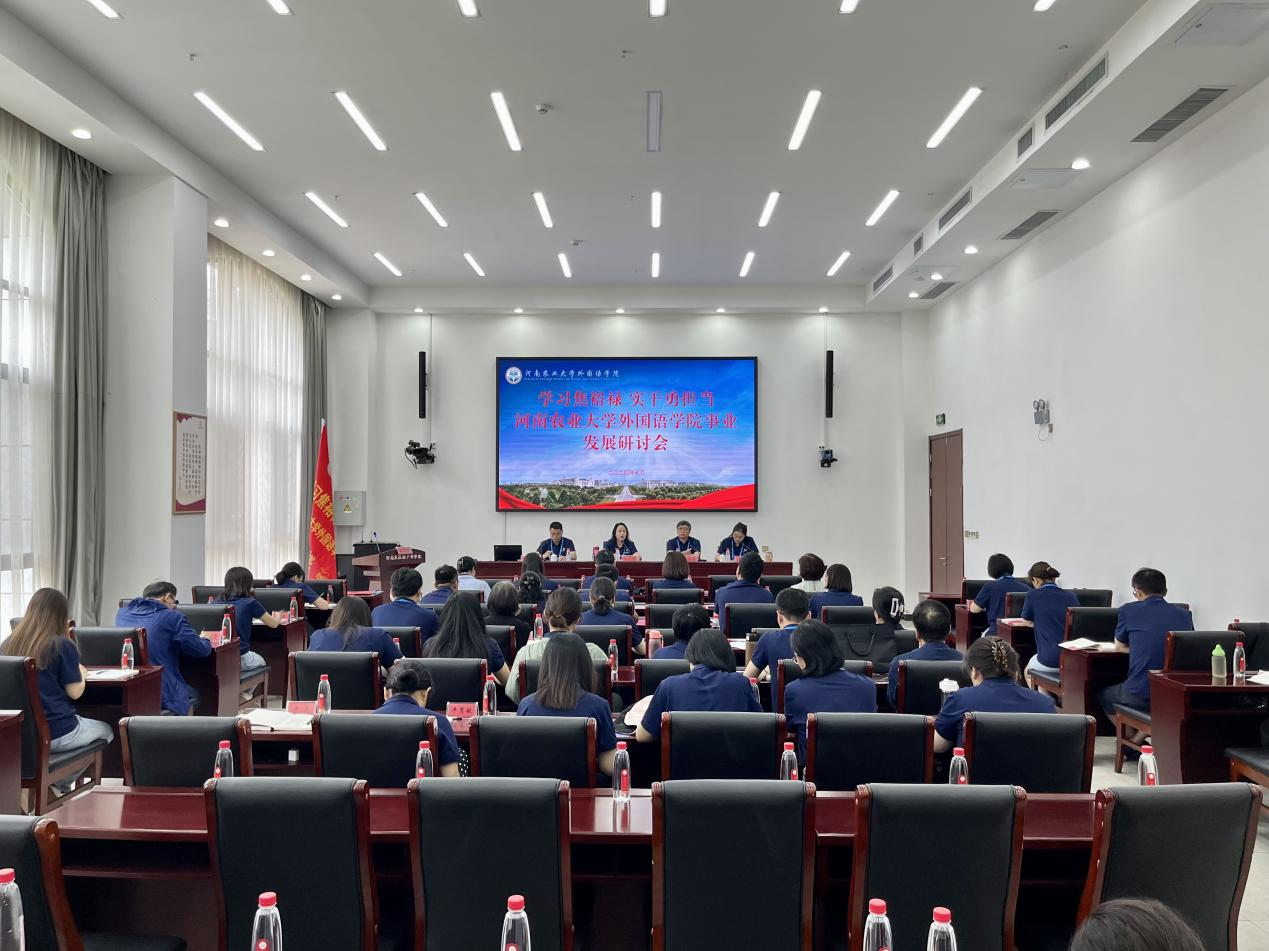 事业发展研讨会。会议由党委副书记杨鑫主持。学院全体中层围绕系部发展建设进行了发言交流,副院长吴玲就学院教学工作发表了讲话,全体与会人员进行了分组研讨。院长张俊杰提出两点希望:一是深刻领悟焦裕禄精神,加强个人修养,加强师德师风建设;二是深学细照、在工作中笃行焦裕禄精神,为学院事业发展再立新功。党委书记王燕萍针对现场交流,以“百姓谁不爱好官”为核心,结合个人工作实际,为全体中层下一步成长指出方向:提升认知,善于思考,勤于总结;对下一步工作提出要求:把焦裕禄精神落实在工作中,眼盯着系部建设,心装着师生的需求,怀揣学院事业发展,深入思考外语发展我要何为的答卷,实干担当。