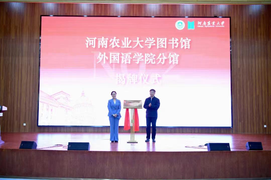 启动仪式上,图书馆馆长张华和性爱网 院长张俊杰共同为性爱网 图书馆性爱网 分馆揭牌。