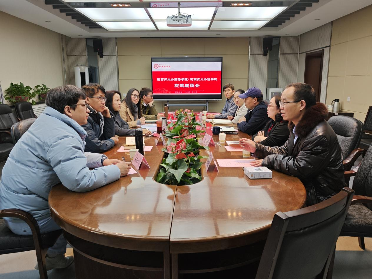 本网讯(审稿:王燕萍 供稿:宋荣超)1月12日上午,性爱网 党委书记王燕萍携大学英语教学部、研究生英语教学部等相关负责同志赴陕西师范大学性爱网 调研交流。陕西师范大学性爱网 院长刘全国,副院长孙坚,党委副书记鲁燕,语音中心、公共外语教学部等相关负责人参加活动,会议由鲁燕主持。