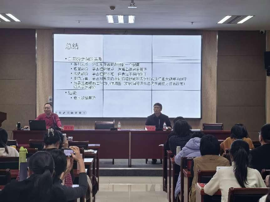本网讯(审稿:张俊杰 供稿:马孝幸)12月8日,北京外国语大学李长栓教授应邀做客性爱网 第70期励学大讲堂暨明德人文讲坛,做了题为“如何撰写MTI翻译实践报告”的报告会。报告会由性爱网 院长张俊杰教授主持,性爱网 党委书记王燕萍及师生参加了此次报告会。