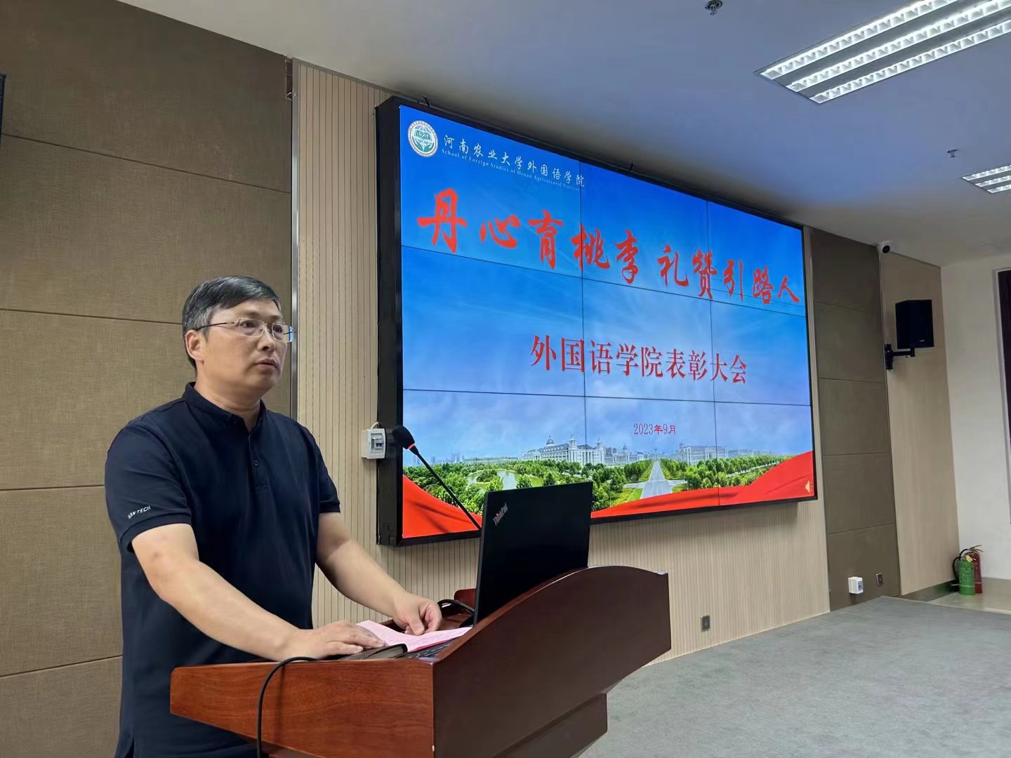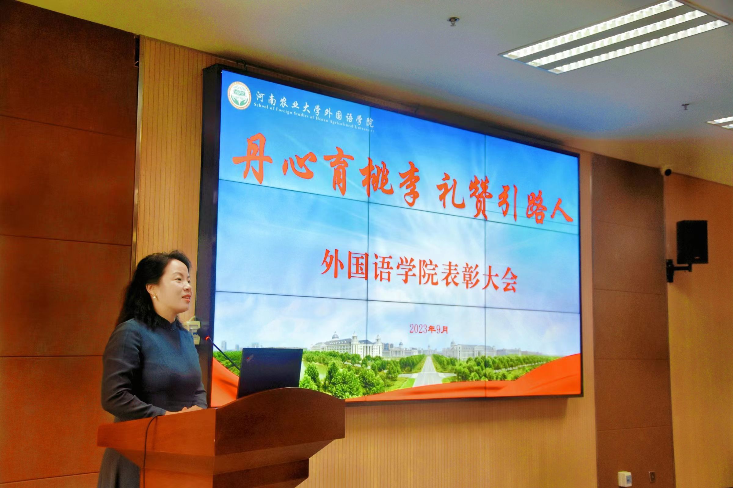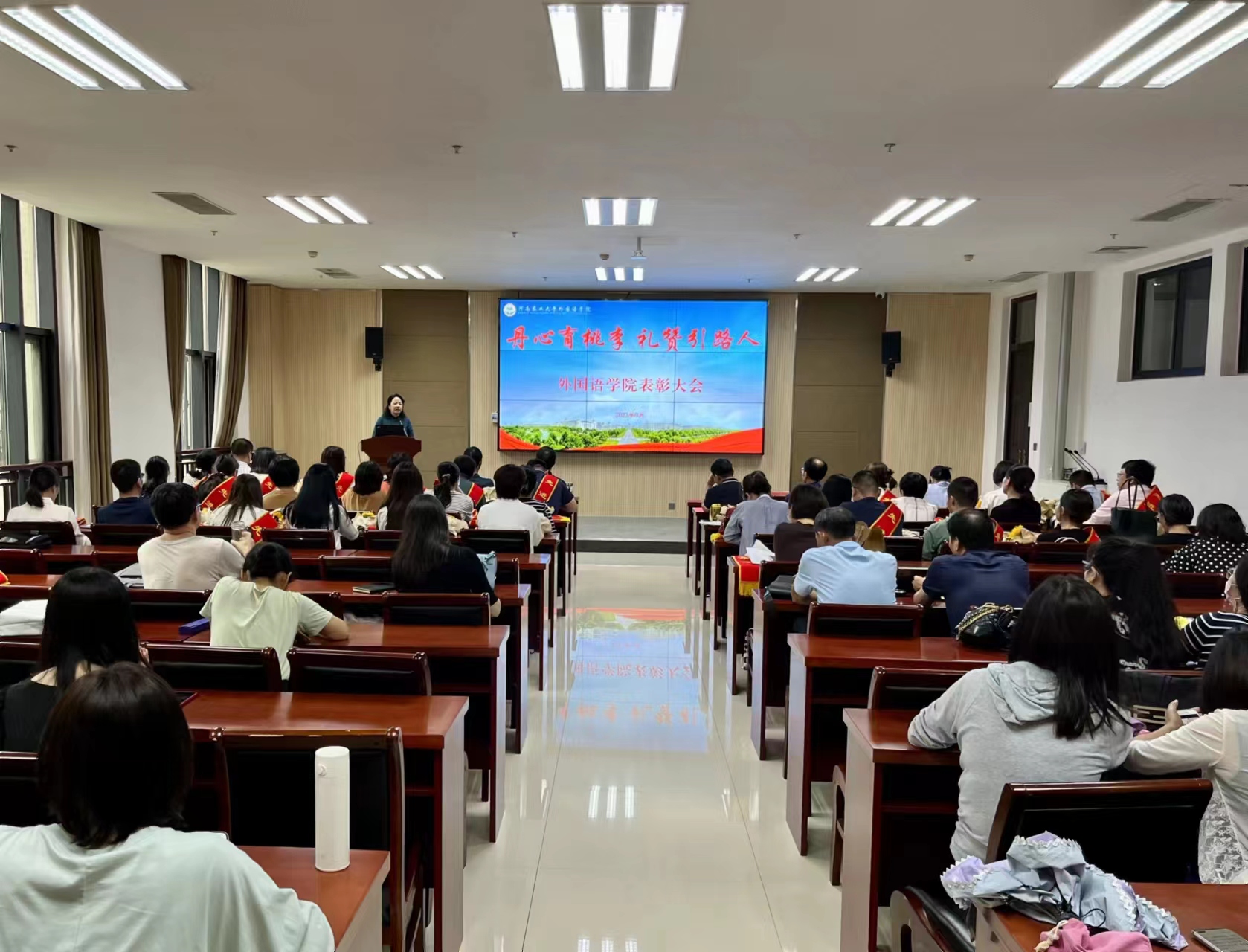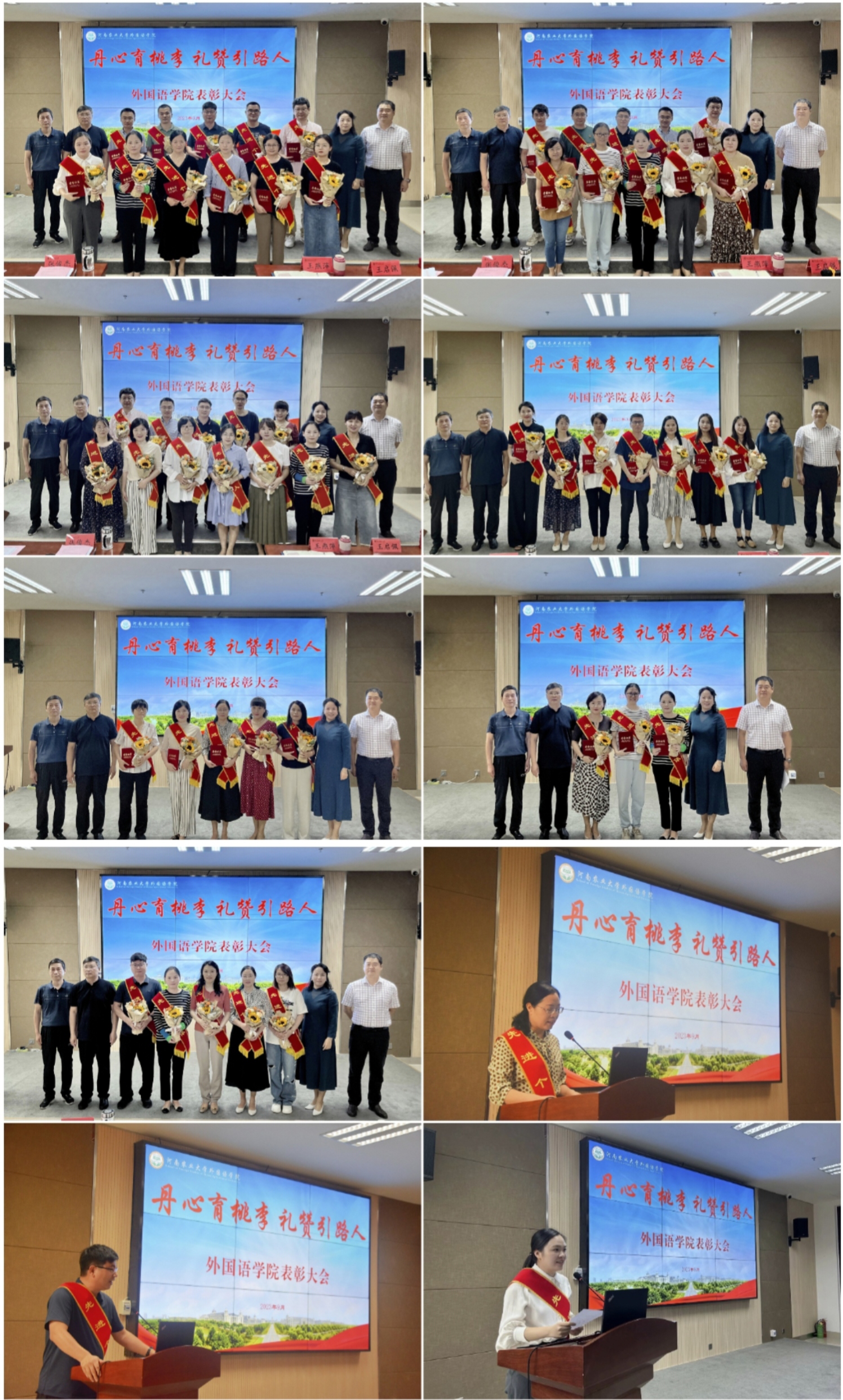 院长张俊杰宣读了获得“出彩河南人”2023年最美教师、河南省文明教师、河南省教学技能大赛一等奖、“翻译河南工程”优秀成果奖,校巾帼标兵、优秀教师、优秀班主任、十佳辅导员等省级、校级荣誉教师名单。副院长张卫东宣读了性爱网