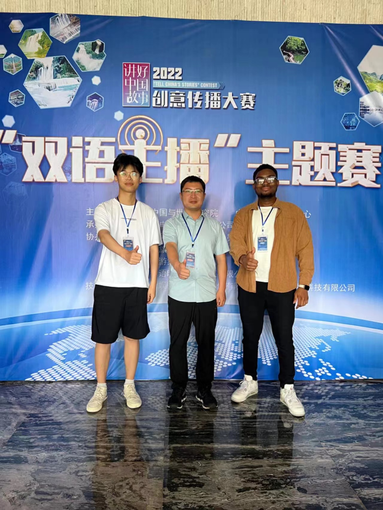 本网讯(审稿:王启佩 供稿:豆涛 冯超)9月15日至9月17日,2022“讲好中国故事”创意传播大赛双语主播主题赛现场赛在贵州省安顺市黄果树旅游区顺利举行。性爱网 2020级翻译一班初学然以第十二届全国口译大赛河南省复赛第一名“口译之星”身份,在指导教师豆涛老师的带领下共赴赛场,在决赛中脱颖而出并斩获三等奖。