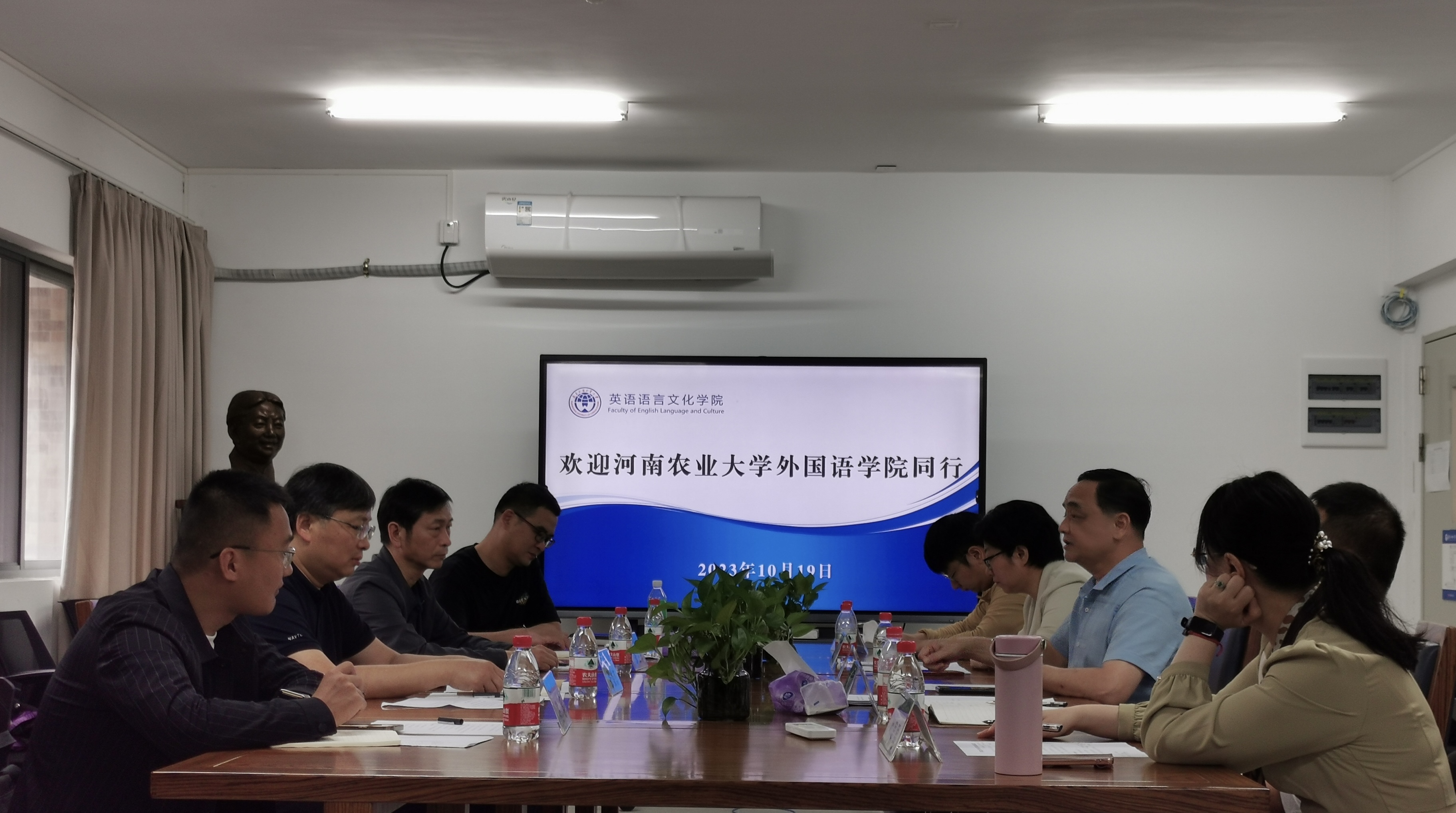 本网讯(审稿:张俊杰 供稿:冯超)10月19日上午,院长张俊杰带领院班子成员,英语系、团委相关负责同志赴广东外语外贸大学英语语言文化学院调研交流。广东外语外贸大学英语语言文化学院院长张欣,五级组织员何伟儒,院班子成员,英美文学系、团委相关负责同志参加活动,会议由何伟儒主持。