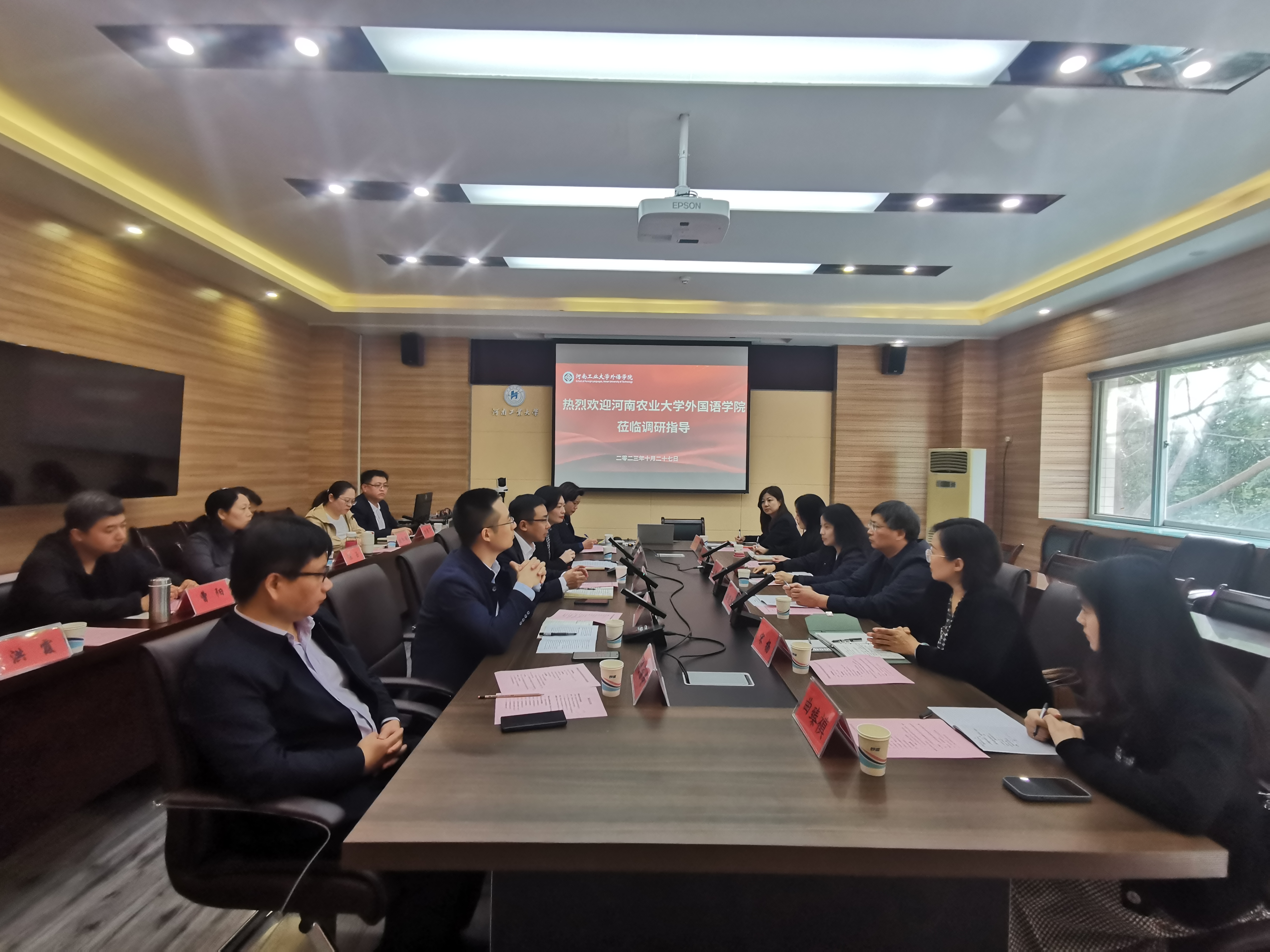本网讯(审稿人 王燕萍 供稿人 郝晓峰 刘佳)为加强交流合作,推动学院事业综合发展,10月27日上午,院党委书记王燕萍、院长张俊杰一行赴河南工业大学外语学院调研交流。河南工业大学外语学院党委书记王云涛及相关领导和教师参加了活动。