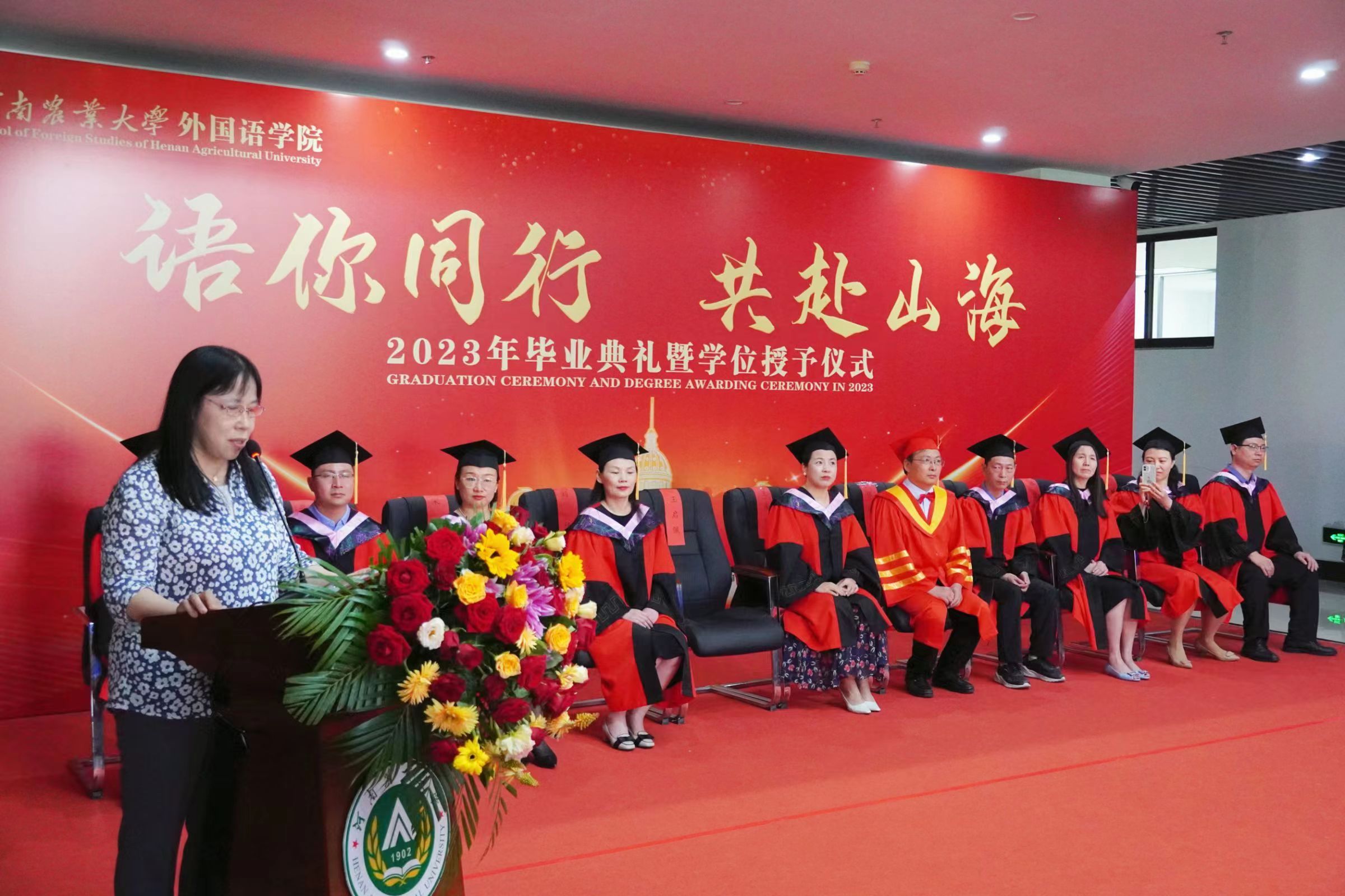 2023年毕业典礼暨学位授予仪式在龙子湖校区繁塔楼A座隆重举行。323名2023届毕业生顺利完成毕业,即将奔向远方,扬帆起航。院党委书记王燕萍、院长张俊杰携院领导班子成员及院学位评定委员会委员身着学位服出席仪式。