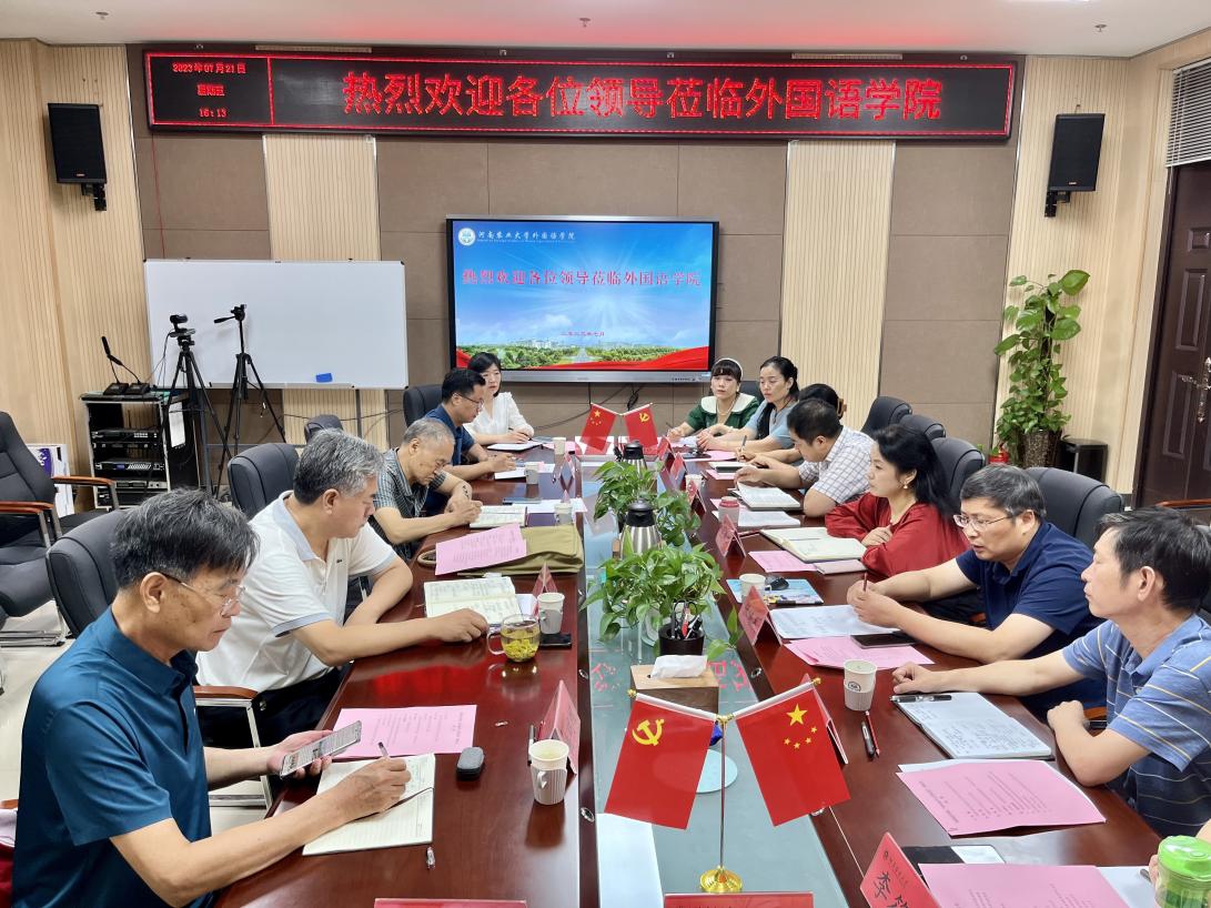 ,对学院乡村振兴工作开展情况及取得成效,从外语翻译、科学研究、社会调研与合作共建及青年学生社会实践等四个方面进行了汇报。