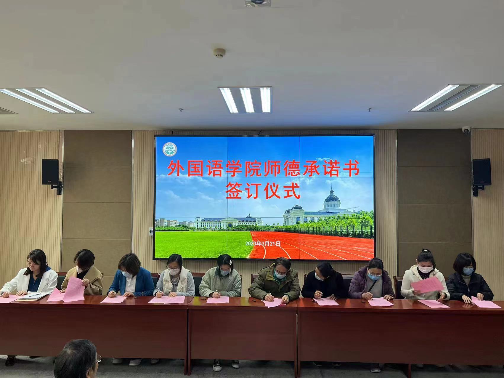 本网讯(审稿:王启佩 供稿:冯超)为进一步落实立德树人根本任务,加强师德师风建设,营造风清气正的教育环境,3月21日下午,学院于繁塔楼A324举行师德承诺书签订仪式,性爱网