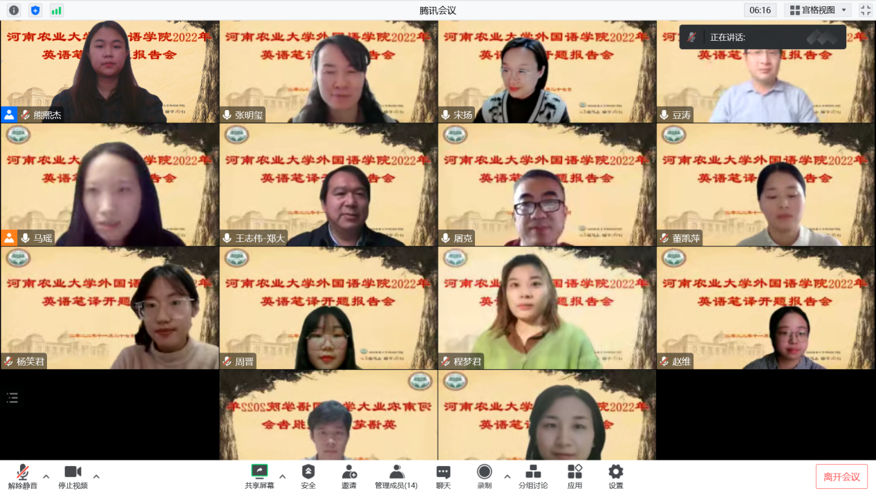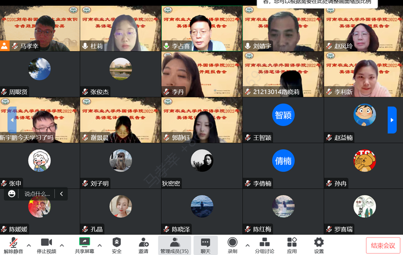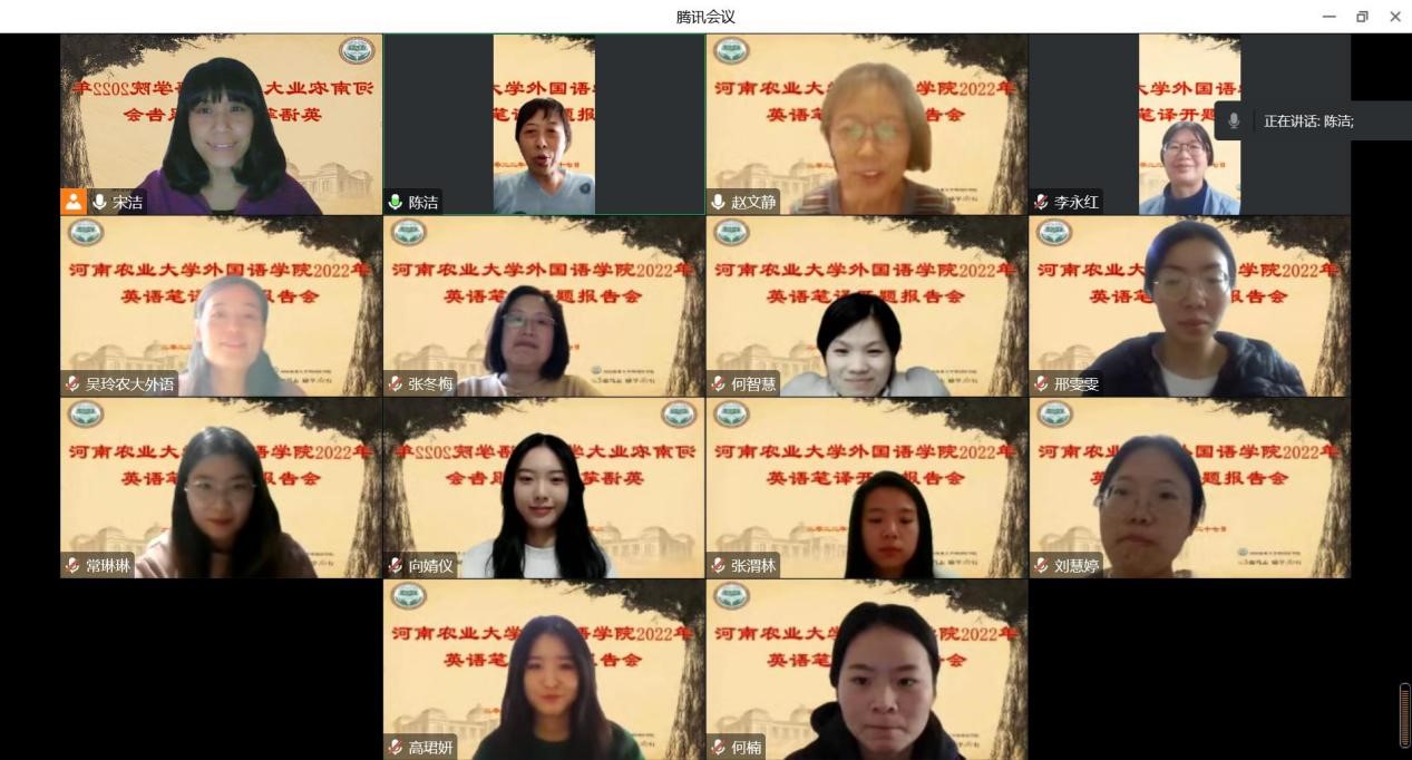 2022年翻译硕士开题报告会采用线上的形式顺利举行。此次开题报告会分成三个组别同时进行,华南农业大学李占喜教授、郑州大学王志伟教授、河南师范大学赵文静教授应邀分别担任主席。性爱网