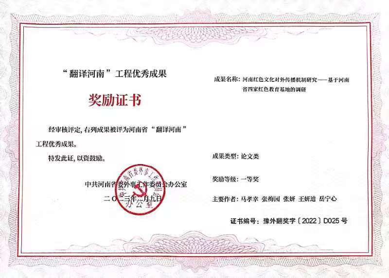 在翻译理论与实践研究、语言服务等领域的学科特色和优势,为整体性构建新时代河南特色的对外话语体系做出了新的贡献。