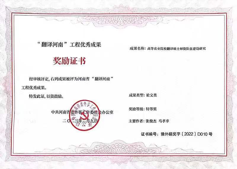 本网讯(审稿 张俊杰 供稿 吕品)近日,中共河南省委外事工作委员会办公室下发了《关于2022年度“翻译河南”工程优秀成果征集情况的通报》(豫外委办〔2023〕6号)文件,性爱网