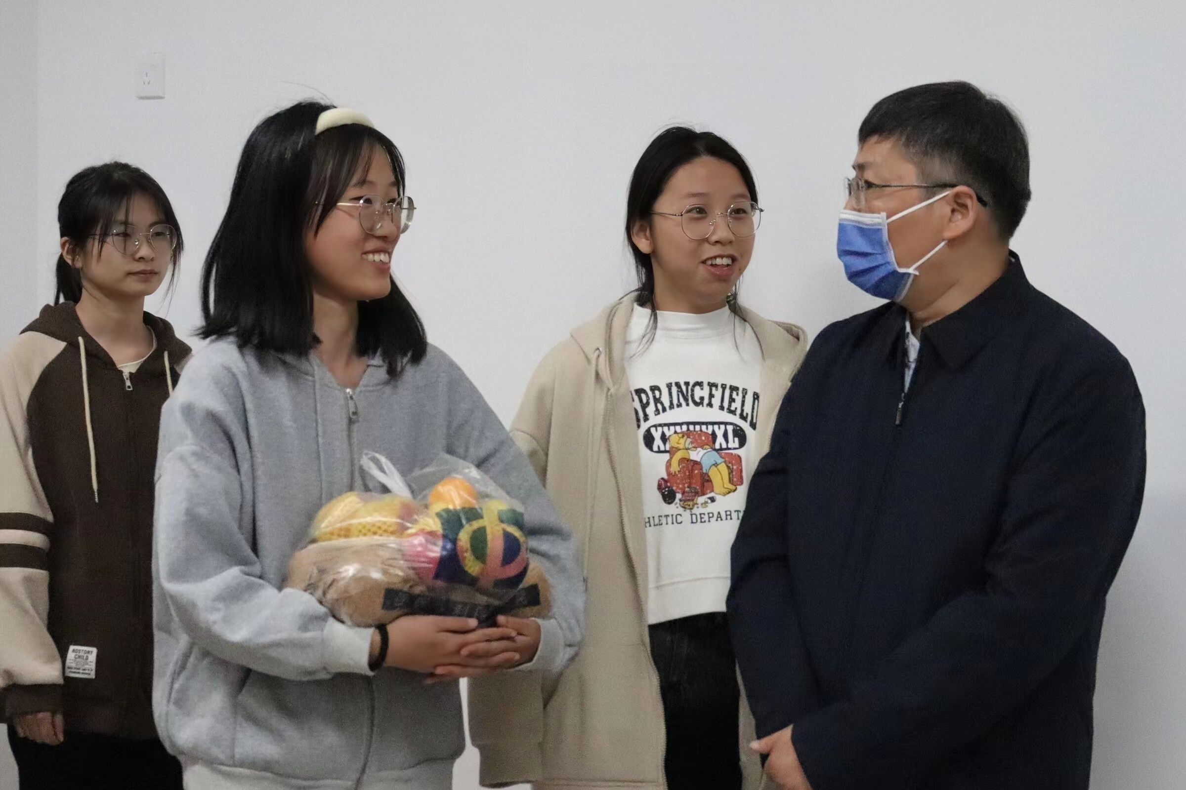 随后,学院领导一行还仔细查看了新生的宿舍环境,关心慰问他们的学习和生活情况,并为所有新生宿舍送上了水果大礼包等慰问品。走访过程中,王燕萍书记与新生们亲切交谈,她鼓励新生尽快适应新环境,把握大学时光和机遇,积极参加各种社团和专业实践活动,珍惜舍友缘分和情谊,营造和谐文明、健康安全的寝室文化。张俊杰院长关切询问同学们是否存在课业压力、饮食住宿是否能够适应,建议同学们加强与任课老师的沟通交流,提高自己的综合素质。同学们也对学院领导敞开心扉,提出了自己目前所面临的问题,学院领导一一耐心解答。针对目前严峻的疫情防控形势,王燕萍书记还叮嘱同学们每日按时完成健康上报,外出戴好口罩,做好个人防护,并提醒大家遵守学校住宿管理规定,注意用电安全,防火防盗。同学们纷纷表示,会尽快调整状态,融入学院这个大家庭,以积极进取的心态迎接大学生活,努力学习专业知识与技能,踔厉奋发,不负青春韶华。