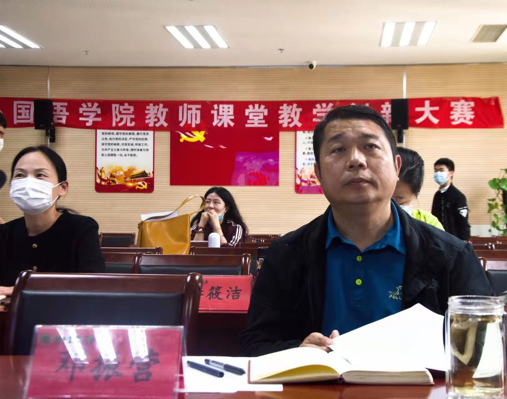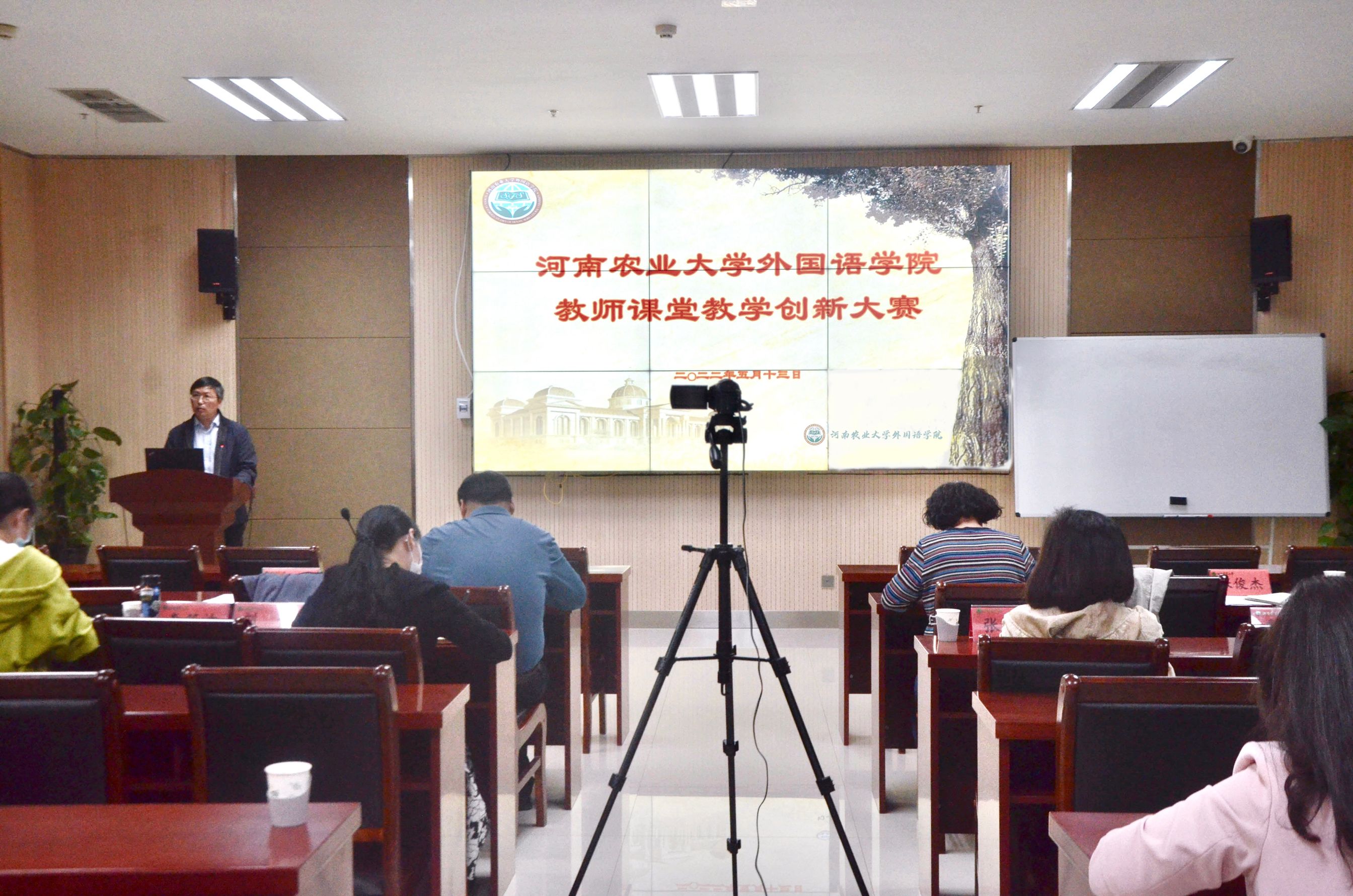 于龙子湖校区繁塔楼A324会议室举办教师课堂教学创新大赛。教务处副处长王金铎莅临指导,校教学督导郑笑平,院教学督导张冬梅、院党委书记邓振营以及各系部教授代表组成评委团,学院教工代表观摩比赛,大赛由院长张俊杰主持。