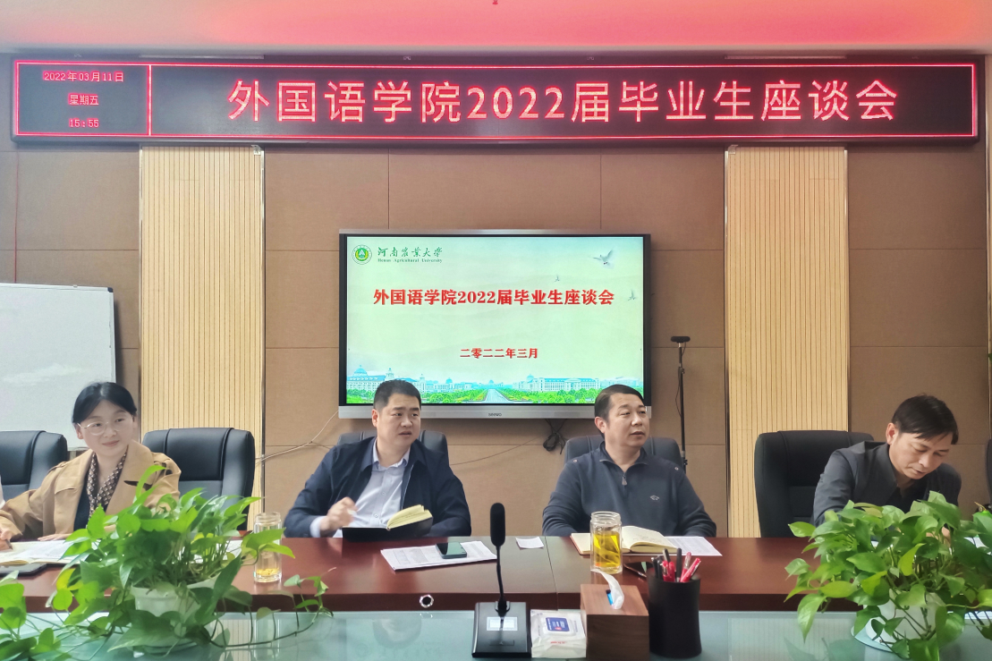 于龙子湖校区繁塔楼A320会议室召开了毕业生座谈会。会议由院党委副书记王启佩主持召开,院班子成员、年级辅导员、毕业班学生代表参加会议。