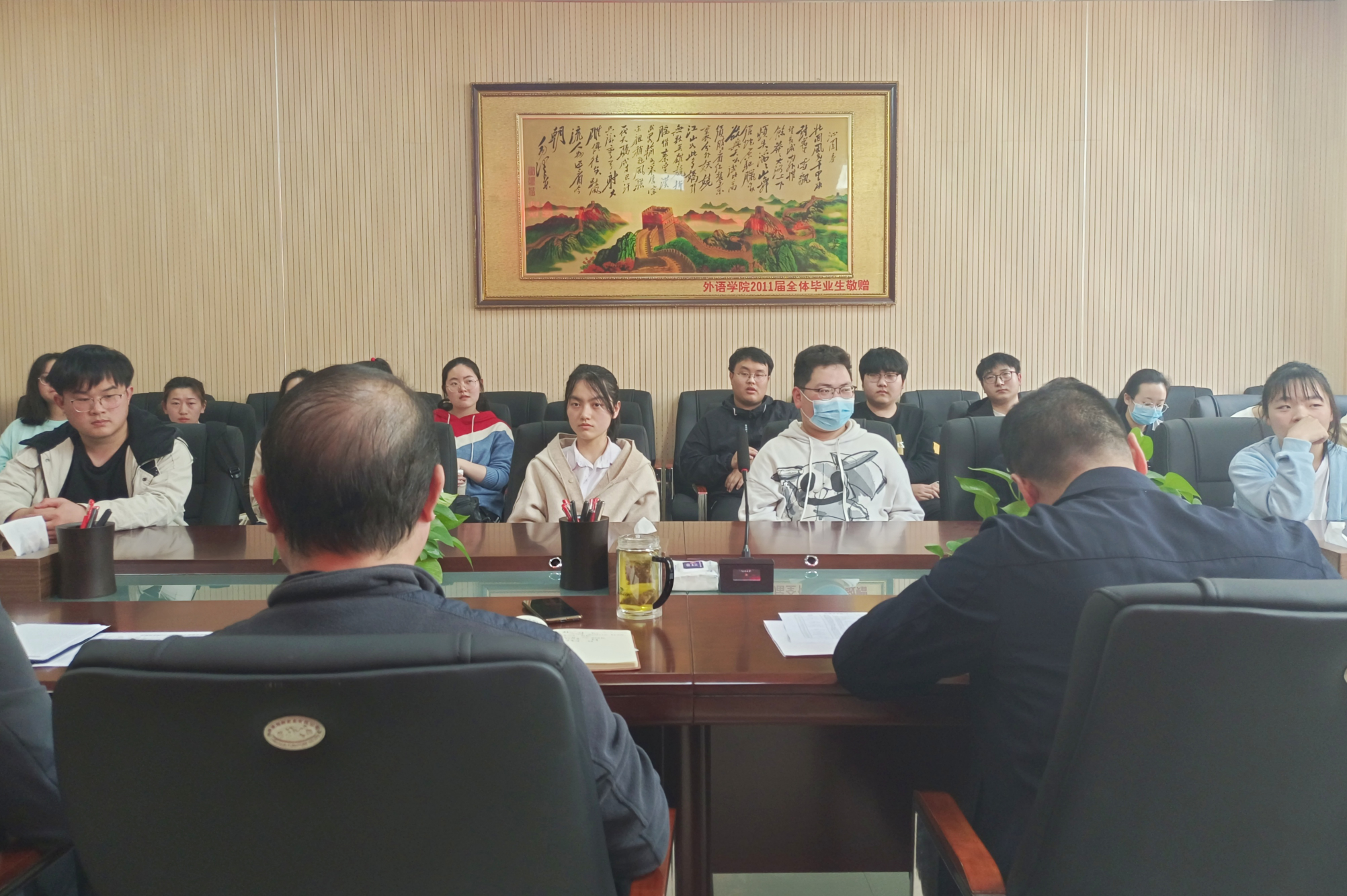 与会老师认真倾听,仔细记录,分别就学习、考研、就业、考公等方面遇到的问题和困惑做答疑解惑,并指出会高度重视同学们提出的问题,将好的建议纳入到学院的发展和建设中去。邓振营指出毕业生们要勇于展示自我,学会选择,并为自己的选择坚持到底。张卫东嘱咐毕业生们在求职过程中一定要擦亮眼睛,保护好人身财产安全。最后,王启佩寄语全体毕业生要做到知行合一,将理论知识充分运用到实践中,学真知、做真人,身正律己,力争上游,抓住展示自我的时机,以积极向上的姿态应对未来的挑战。至此,会议圆满结束。