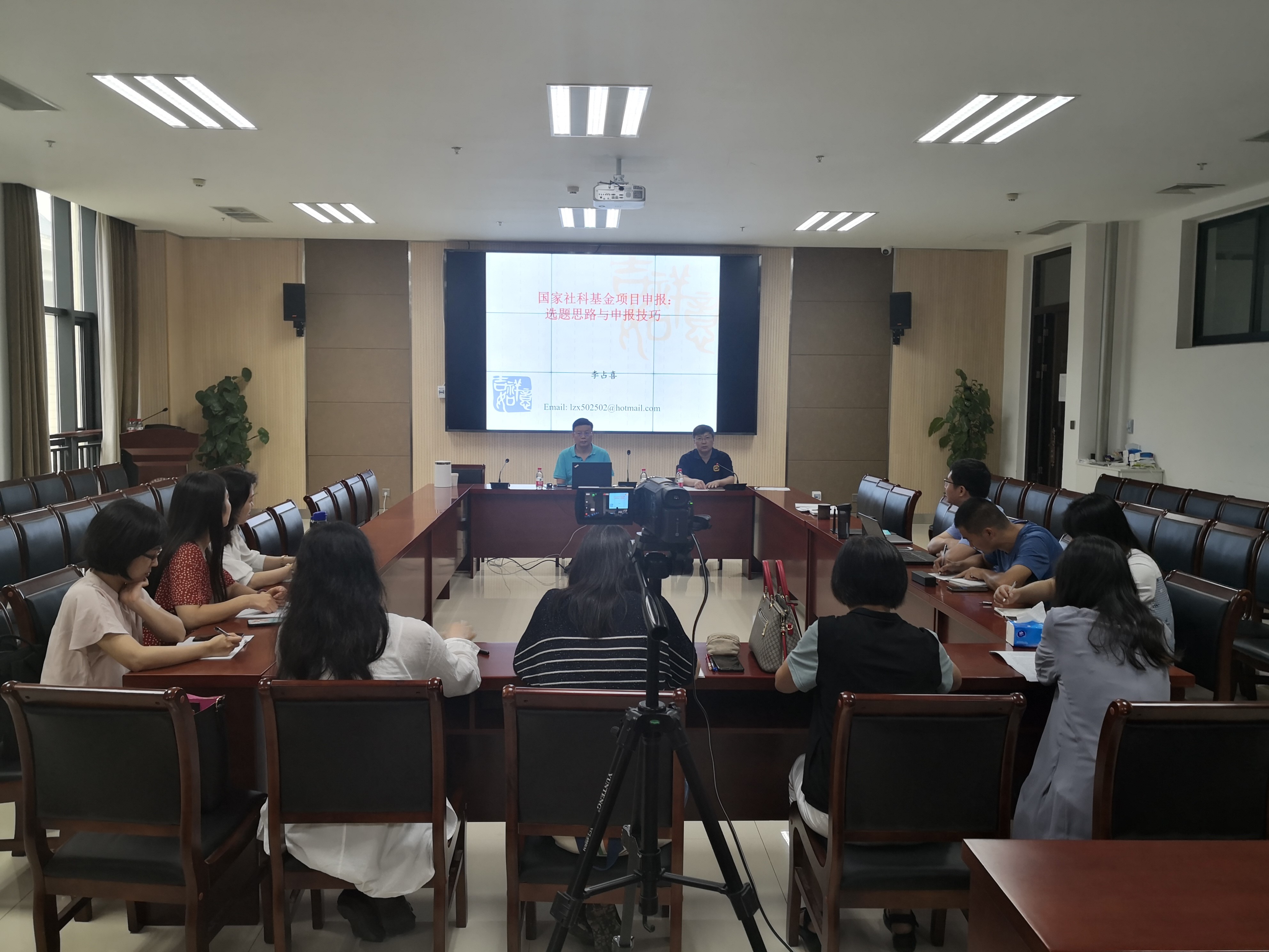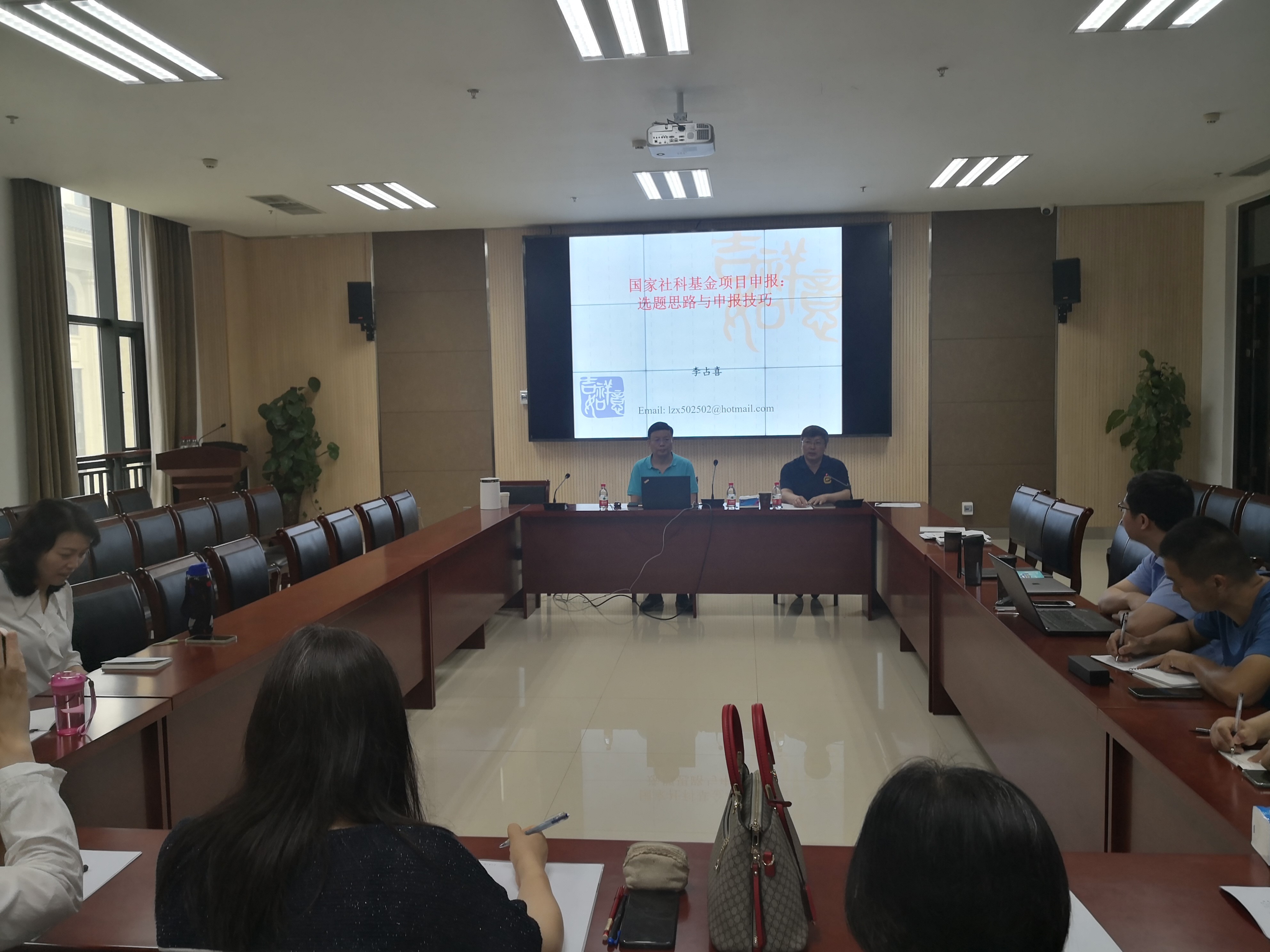 李占喜教授、博士做题为“国家社科基金项目的选题思路与撰写技巧”的报告会。会议由院长张俊杰教授主持,校级重点学科成员及博士、在读博士等教师参加。