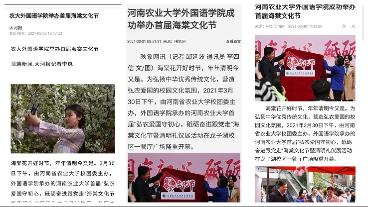 网易新闻、映象新闻、中华网等多家媒体报道性爱网 “弘农爱国守初心、砥砺奋进跟党走”性爱网 首届海棠文化节