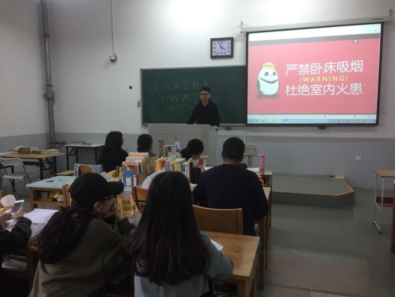 学生消防安全意识,10月15日下午,学院团委组织全体研究生在龙子湖校区繁塔楼教室E108举办消防安全知识教育主题班会。