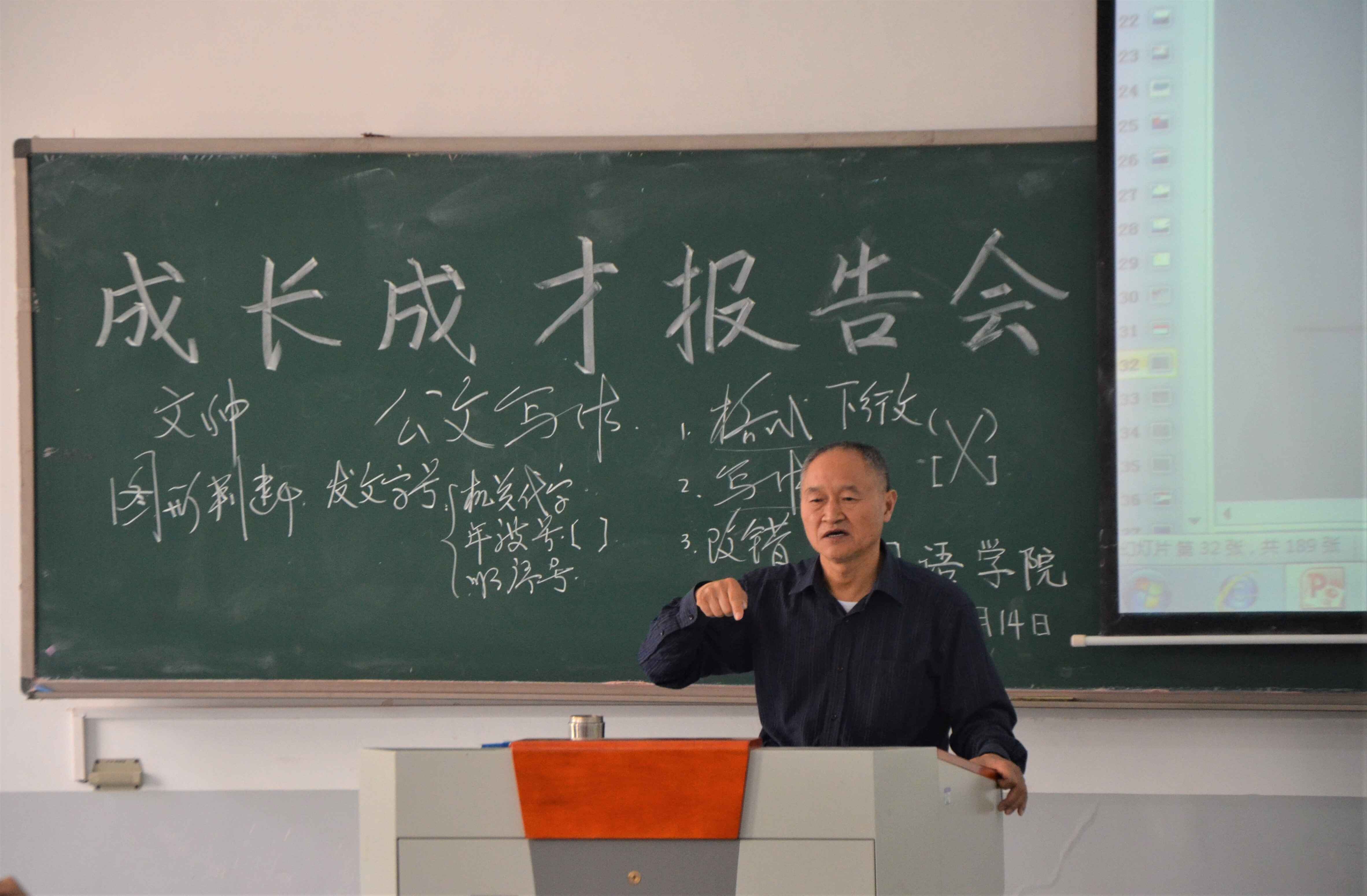 学子作以“公文写作”为主题的成长成才教育专题报告会。