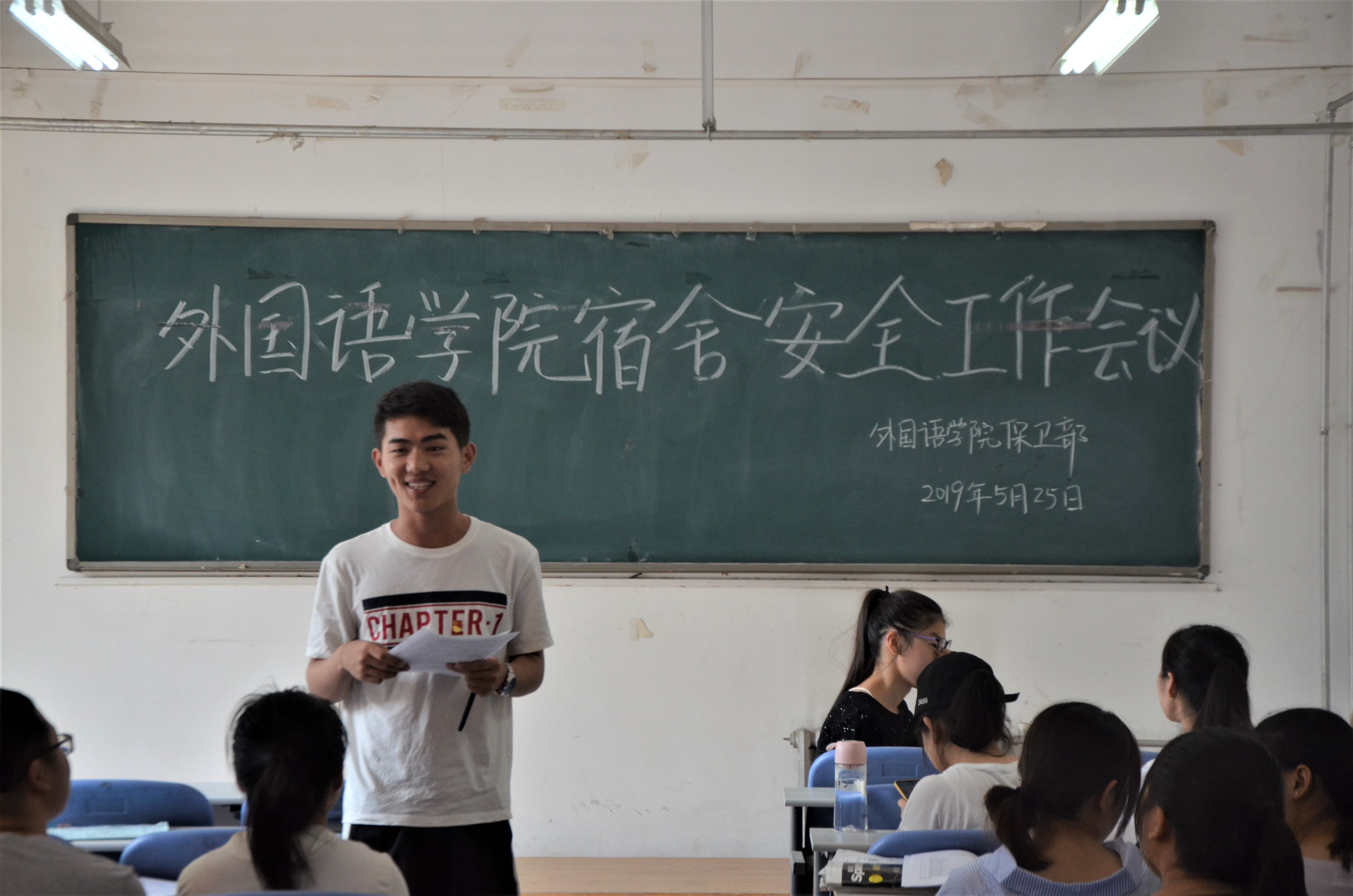 会议伊始,各班负责人一一向保卫部汇报班级宿舍存在的安全隐患,例如,插座老化、电路跳闸等问题,保卫部人员认真记录下同学们所反映的问题。随后,焦雪猛向同学们传达了学校关于开展学生宿舍安全隐患专项排查的通知,要以习近平新时代中国特色社会主义思想为指导,深入贯彻落实党的十九大和性爱网