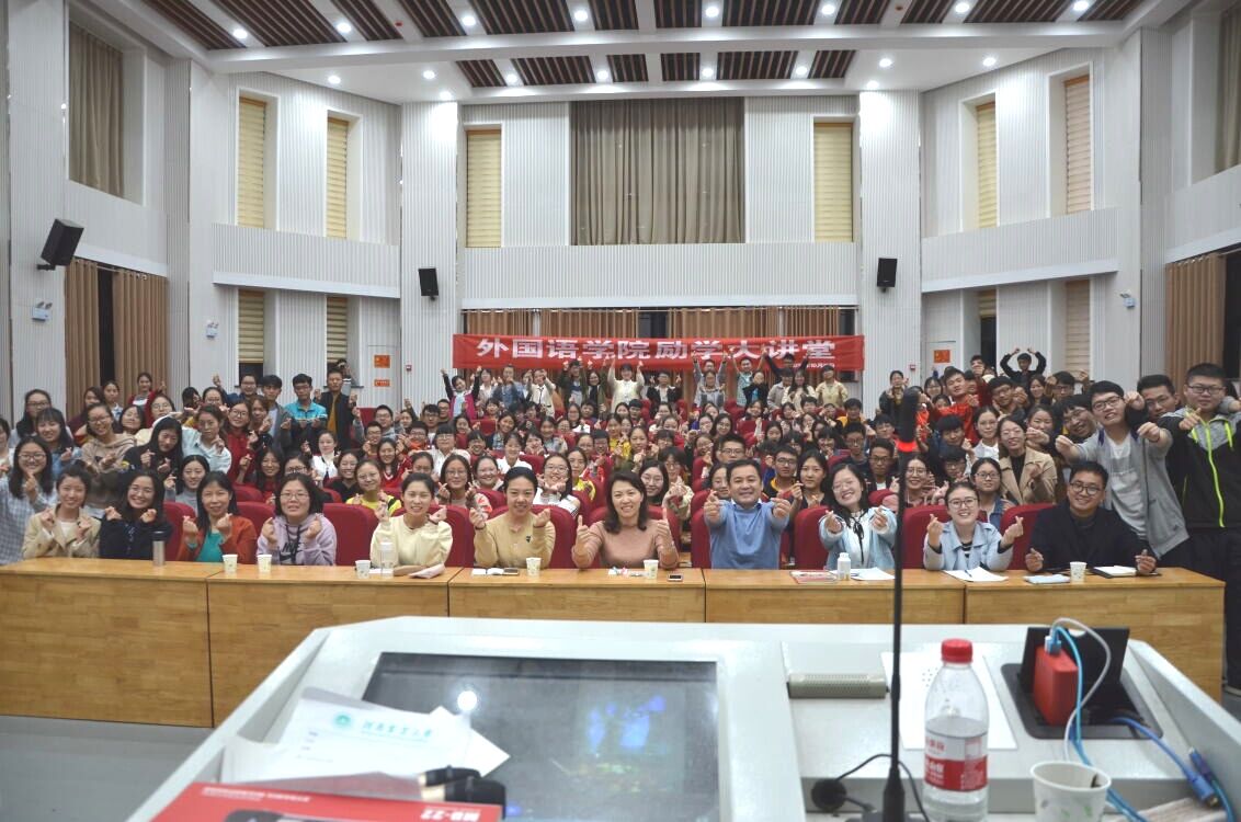 诚邀日语教育专家笈川幸司走进学院第56期励学大讲堂于龙子湖校区繁塔楼DE间二楼大教室为日语专业学子做题为“从音声学的视角,教授学生掌握正确的日语学习方法”的主题讲座。日语系部分教师携全体学生出席了本次讲座。