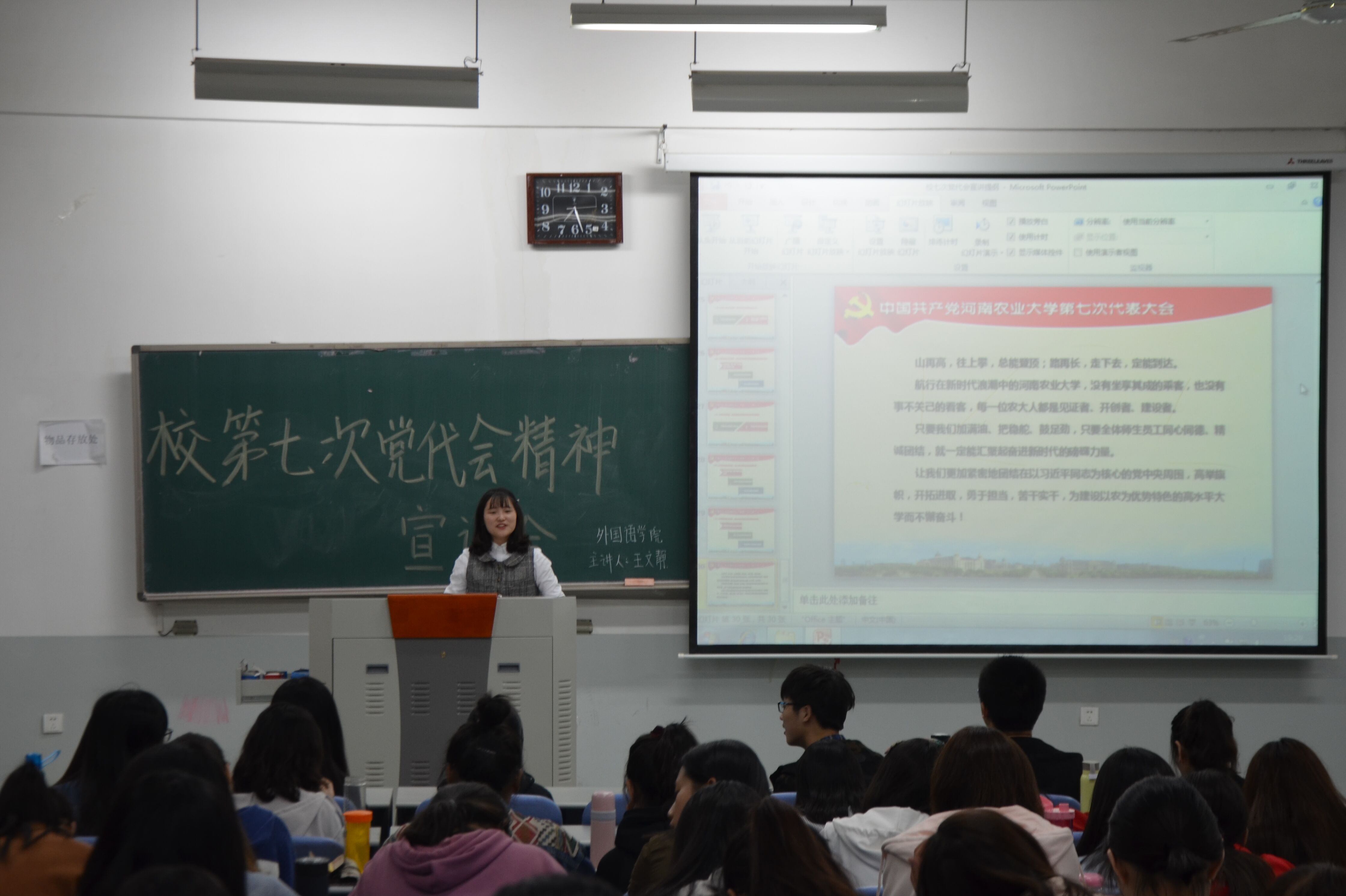 随后,学院辅导员纷纷走进团支部宣讲学校七次党代会精神。大家纷纷勉励学生要践行学校七次党代会精神,坚定不移跟党走;要爱校爱院爱专业,扎根中原沃土;要勤练本领,讲好农大故事,弘扬农大精神。