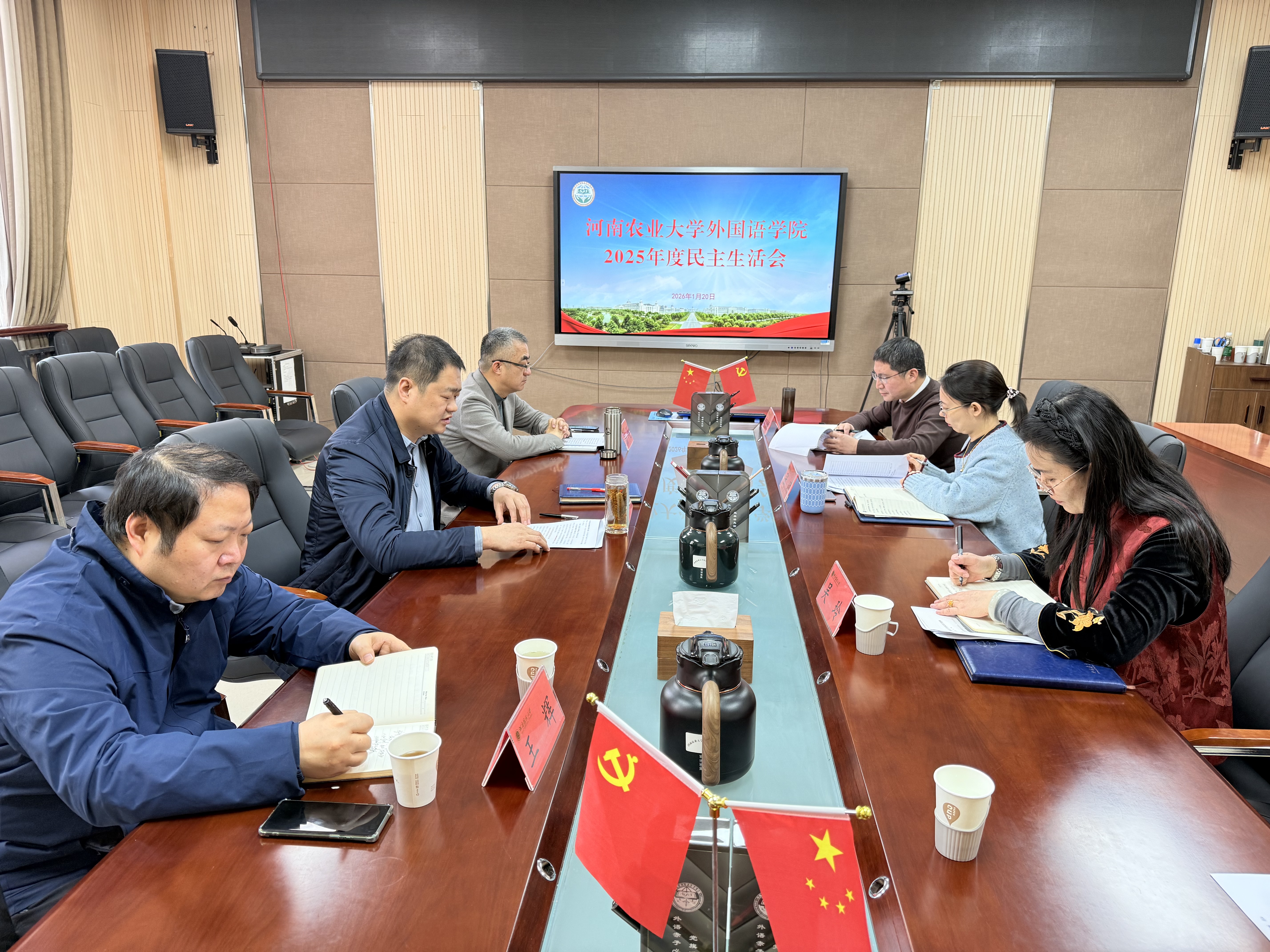 在繁塔楼A320会议室召开2025年度处级党员领导干部民主生活会。校纪委第二纪检监察室主任王辉到会指导,学院党委书记王启佩主持会议,学院领导班子全体成员参加会议。