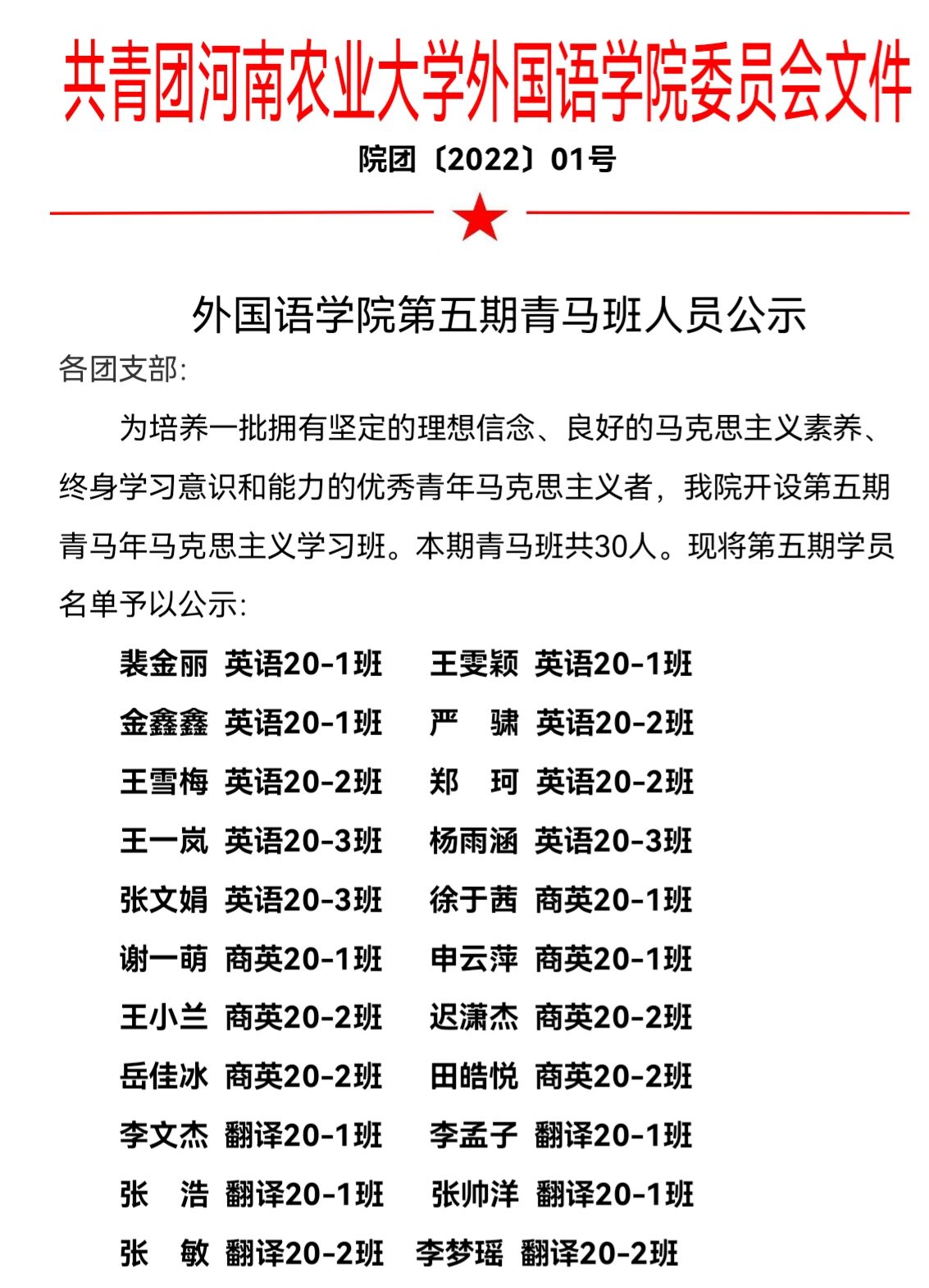 性爱网 第五期青马班人员公示