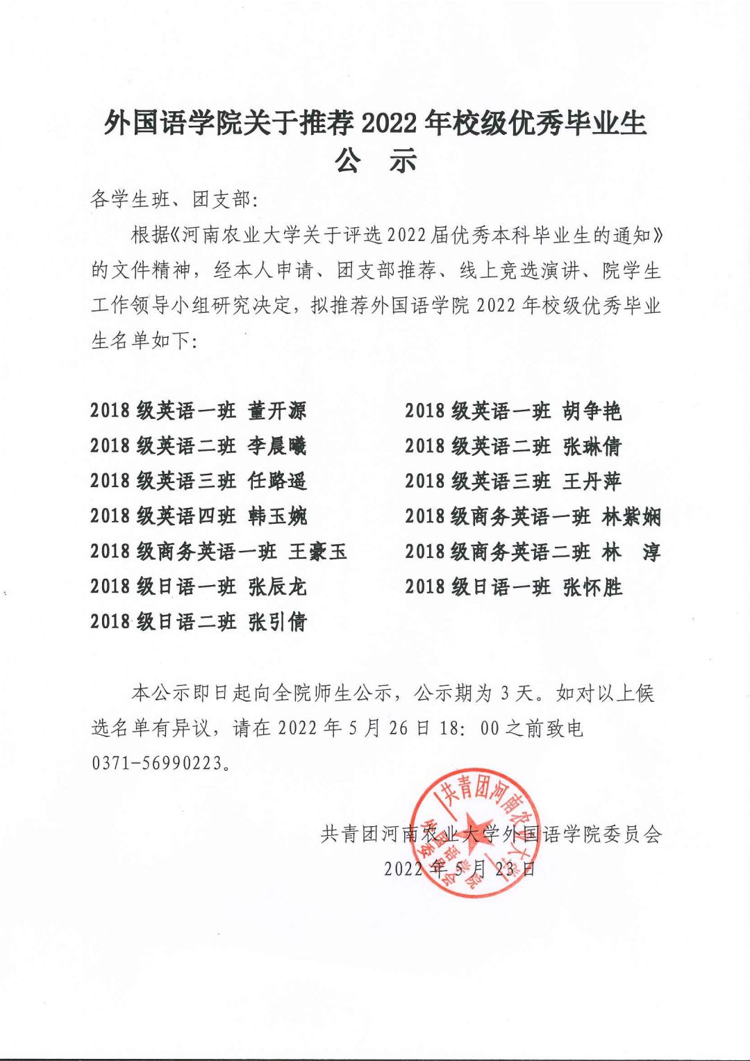 性爱网 关于推荐2022年校级优秀毕业生公示