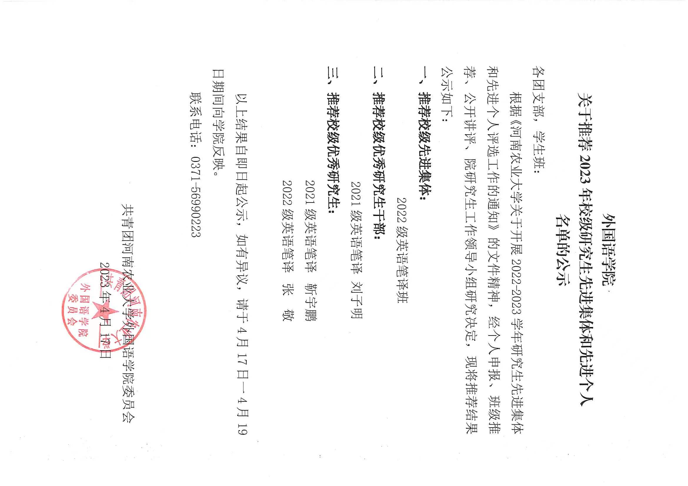 性爱网 关于推荐2023年校级研究生先进集体和先进个人名单公示